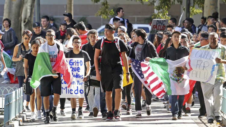Las manifestaciones en protesta por la victoria del republicano Donald Trump en las elecciones presidenciales de Estados Unidos entraron en su segunda semana el lunes, cuando miles de estudiantes corearon frases como "No es mi presidente" después de abandonar las clases en distintas ciudades del país.Las últimas protestas vienen luego de que Trump recibió fuertes críticas por el nombramiento del conservador Stephen Bannon como su estratega jefe, lo que algunos dijeron llevaría al movimiento nacionalista blanco a los más altos estratos de la Casa Blanca.El Distrito Escolar Unificado de Los Angeles estimó que 4.000 estudiantes abandonaron las clases en toda la ciudad en protesta contra el presidente electo, quien durante su campaña prometió deportar a los inmigrantes indocumentados y la construcción de un muro entre Estados Unidos y México.Funcionarios de las Escuelas Públicas de Seattle dijeron que cerca de 5.000 estudiantes abandonaron las clases en 20 escuelas secundarias y primarias el lunes. Esa cifra representa alrededor del 10 por ciento del total de estudiantes del distrito, según el portavoz de las escuelas Luke Duecy.Las autoridades en Portland, Oregón, el condado de Montgomery, Maryland, y el Área de la Bahía de San Francisco dijeron que cientos de jóvenes también se manifestaron en esos lugares.Decenas de miles de personas han marchado en ciudades desde Nueva York a Los Angeles en manifestaciones en gran medida pacíficas tras la inesperada victoria del martes pasado de Trump frente a la demócrata Hillary Clinton.Trump aseguró los votos suficientes en el Colegio Electoral de 538 miembros para ganar la presidencia, pese a que Clinton lo superó en el voto popular.Trump hizo un llamado por la paz y la unidad y el domingo dijo que estaba "muy triste" de escuchar que algunos de sus seguidores habían realizado insultos raciales y amenazas personales contra los afroamericanos, los latinos y los gays.Fuente: Medios Digitales