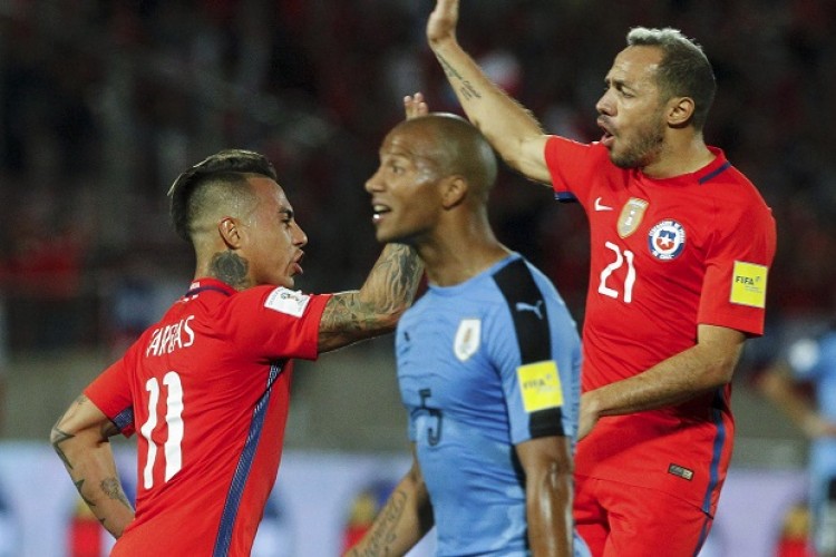Chile venció a Uruguay por 3 goles a 1 en el partido que juegan en el estadio Nacional de Santiago, correspondiente a la duodécima fecha de la Eliminatoria Sudamericana para la Copa del Mundo Rusia 2018. Los goles fueron obras de Edinson Cavani para la visita a los 16 minutos y de Eduardo Vargas para la "Roja" a los 46, ambos en la primera mitad, mientras que en la segunda etapa, Alexis Sánchez adelantó a los locales con dos tantos en los minutos 60 y 83.Con este resultado, Uruguay mantiene la segunda plaza con 23 puntos, uno menos que el líder Brasil, mientras que Chile se va a 20 y alcanza a Ecuador en la tercera colocación.Por lo tanto, desplaza a Argentina, que con 18 unidades es quinta y ahora ocupa plaza de repechaje.