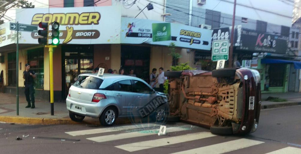 Según el informe policiale, Susana M. conducía su Chevrolet Agile por calle Córdoba cuando, por causas que se tratan de establecer, colisionó con una Renault Kangoo que iba por Junín guiada por Mario P; A raíz del impacto, el utilitario volcó lateralmente.Ambos conductores fueron asistidos por paramédicos, y aparentemente no sufrieron lesiones de gravedad.En el lugar intervino personal de la comisaría 1ª y peritos de la Policía Científica.