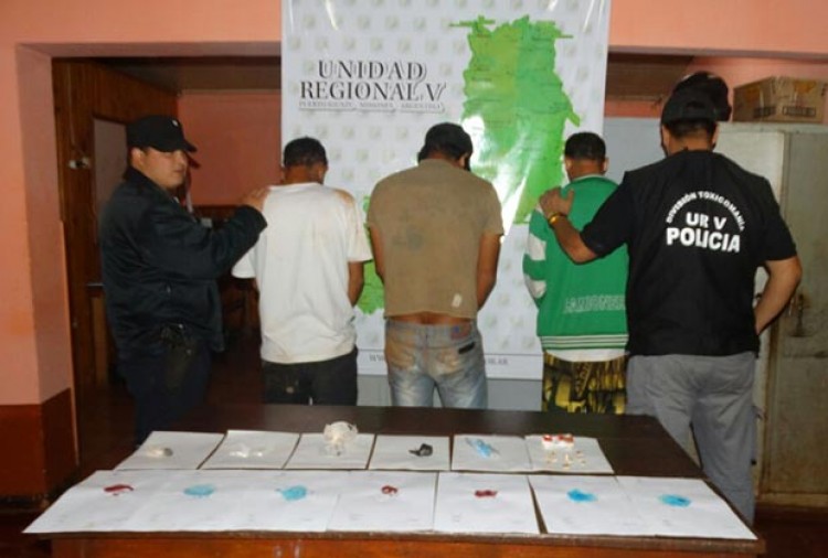 En menos de 24 horas, se detectó una "huerta" de cannabis sativa en una casa y se detuvo a tres hombres sorprendidos en el momento exacto en que estaban comercializando estupefacientes.Los efectivos de Toxicomanía de la UR-V, con apoyo de sus pares del Comando y la Comisaría local identificaron a varias personas, entre ellas a Enrique A. (38), Alberto G. (38) y Luis B. (32) quienes tenían droga en su poder.Al producirse la requisa, se constató que Enrique A. tenía doce envoltorios con “crack” o “pedra” (droga derivada de la cocaína) y otro envoltorio de papel con marihuana. Por su parte Alberto G. llevaba consigo dos envoltorios con cocaína y 44 gramos de marihuana y Luis B. llevaba otra pequeña cantidad de cannabis.Horas antes, los efectivos de Toxicomanía de la UR-V habían intervenido en un inmueble del barrio Esperanza I y comprobaron la existencia de seis plantas de cannabis sativa de entre 1,50 y 2 metros de altura, las que fueron secuestradas inmediatamente. De la existencia de las plantas se tomó conocimiento a raíz de la denuncia de una mujer quien no sólo manifestó que su marido la maltrataba, sino que también cultivaba marihuana en el patio trasero de su casa.