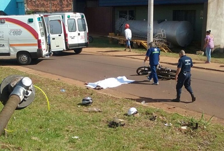 El hombre, identificado como Víctor Fabián Sommariva, de 23 años falleció en el acto, mientras que la joven que la acompañaba a bordo de la motocicleta Corven de 150 cc fue hospitalizada, aunque estaría fuera de peligro.La Policía trata de establecer lo ocurrido alrededor de las 9:00 de este domingo en la colectora de la arteria nacional, entre calles Alberto Roth y Cataratas del Iguazú, donde la víctima perdió el control del rodado y cayó pesadamente sobre la cinta asfáltica, lo que le provocó fuertes golpes que resultaron fatales.No se descarta la participación de un segundo vehículo en el hecho.Intervinieron efectivos de la Seccional Quinta por razones de jurisdicción y de la Policía Científica para las pericias de rigor.