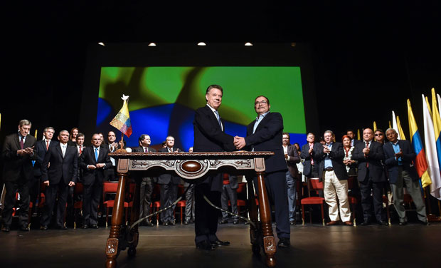 El Gobierno de Colombia firmó con la guerrilla de las Farc un nuevo acuerdo de paz al que ambas partes consideran como definitivo y superador del que fuera rechazado en el plebiscito de octubre pasado.El acuerdo, que ahora deberá ser refrendado por el Congreso, fue firmado por el presidente colombiano, Juan Manuel Santos, y el líder de las Fuerzas Armadas Revolucionarias de Colombia (Farc), Rodrigo Londoño (Timochenko) durante una ceremonia en el centenario Teatro Colón de Bogotá.El camino para llegar al acuerdo definitivo de paz que el gobierno de Colombia y las Farc firmaron en Bogotá ha sido largo y escabroso, a punto tal que los negociadores debieron superar el duro revés que significó el triunfo del No -aunque por menos de un punto porcentual de diferencia- en el plebiscito del 2 de octubre último.La apertura oficial de las negociaciones de paz se conoció el 4 de septiembre de 2012, cuando el presidente Juan Manuel Santos anunció el inicio formal de los diálogos, mediante la discusión de seis puntos.Un mes después, en Noruega se dio apertura oficial a las conversaciones y en noviembre se realizó la primera sesión en La Habana.En la Navidad de 2012, las Fuerzas Armadas Revolucionarias de Colombia informaron de la primera “tregua unilateral”, que luego extendieron en los años posteriores por cortos períodos de tiempo hasta que en 2015 decretaron un alto el fuego indefinido.Pese a los “gestos” dados por las partes a lo largo de los tres años y medio de negociaciones, la paz ha estado en vilo por cuenta de ataques, secuestros, ofensivas militares y desatinos políticos.La situación más crítica se vivió el 17 de noviembre de 2014, cuando el Gobierno suspendió el proceso de paz tras el secuestro de cuatro personas en el sur del país, incluido un general del Ejército.La crisis se superó un mes después, luego de que fueran liberados los retenidos, lo que sirvió de paso para impulsar el punto del desescalamiento del conflicto, la entrega de armas y las zonas de ubicación de los guerrilleros una vez firmada la paz.Sin embargo, el 14 de abril de 2015 el grupo guerrillero acabó con la vida de diez militares en el sur del país, a lo que el ejército respondió al mes siguiente con un bombardeo en el que murieron 26 rebeldes.Ante los ataques y represalias las partes apuraron la creación de una subcomisión negociadora, para que guerrilleros y militares activos discutieran punto por punto cómo sería la mecánica para la salida del conflicto de miles de combatientes rebeldes.Producto de la labor de esa subcomisión, el 19 de enero de este año se anunció la creación de un mecanismo de monitoreo para el cese al fuego bilateral y definitivo.Al mes siguiente se encendió nuevamente la polémica, cuando varios jefes guerrilleros acudieron a una población rural en el norte del país para realizar “pedagogía” de la paz, acompañados por decenas de hombres armados.La polémica no acabó ahí, y el 23 de marzo no se firmó la paz, como lo habían planeado las partes, situación que fue explotada al máximo por el expresidente Álvaro Uribe, líder de los opositores del proceso que han minado reiteradamente la credibilidad de las conversaciones.El 23 de junio último las partes suscribieron y divulgaron el contenido del acuerdo de “cese de hostilidades bilateral y definitivo, y de dejación de las armas”, considerado el preludio de la paz que pondrá fin a un conflicto de más de medio siglo.El 24 de agosto pasado se anunció que se había alcanzado el acuerdo definitivo y los jefes de las delegaciones y los representantes de los países garantes y acompañantes firmaron siete ejemplares, uno para cada una de esas partes y el restante para la Organización de Naciones Unidas (ONU).El 26 de septiembre Santos y el jefe de las Farc, alias Timochenko, firmaron el acuerdo en un acto que convocó en Cartagena de Indias a decenas de jefes de Estado y de gobierno de todo el mundo, pero el pacto quedó en un limbo político el domingo 2 de octubre por la noche, cuando el escrutinio del plebiscito convocado al efecto sorprendió a todo el país con el triunfo del No por escaso margen.Superado el estupor inicial, Santos convocó a sus antecesores Álvaro Uribe y Andrés Pastrana, líderes de la campaña por el No, para invitarlos a presentar las objeciones que pretendían.La oposición llevó a la mesa de negociación en la La Habana unas 500 propuestas para 57 ejes temáticos, y según el Gobierno y la insurgencia 56 de las 57 cuestiones fueron tomadas en cuenta para el nuevo acuerdo que se firmó y que será refrendado por el Congreso la semana próxima.Fuente: Télam