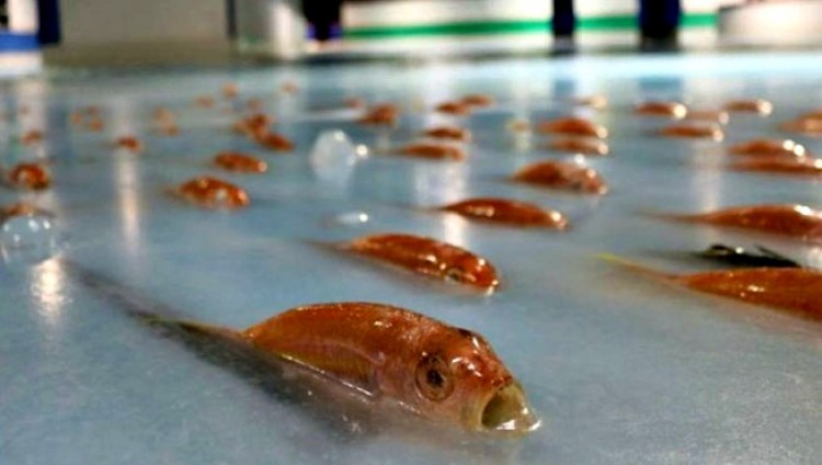 Pista de patinaje con 5.000 peces congelados genera polémica en Japón