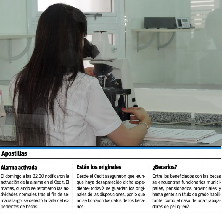Dos días después de la denuncia de PRIMERA EDICIÓN en la que quedó al descubierto que el Comité Ejecutivo de Desarrollo e Innovación Tecnológica (Cedit) otorgaba becas a funcionarios municipales, pensionados y hasta a una peluquera, todos en situación de incompatibilidad, desapareció misteriosamente el expediente de becas de las oficinas del organismo. El faltante se detectó durante las primeras horas de este martes, cuando los trabajadores retomaron sus actividades después del fin de semana largoSegún pudo averiguar este Diario conforme a sus fuentes, la alarma del organismo se activó el domingo a las 22.30 y sólo un grupo reducido de personas (cuatro) tiene la llave de ingreso. Las mismas fuentes dijeron que tres de ellas estaban fuera del país mientras que se desconoce el paradero de Jorge Deschutter. Otra hipótesis que se maneja es que la ministra de Educación, Ivonne Aquino, habría pedido el expediente para analizar la denuncia de PRIMERA EDICIÓN, pero de todas maneras llama la atención el horario y el día elegido para buscar el documento. Además, la Ministra no tendría la llave de acceso. Deschutter está de licencia hasta este viernes, por lo que su presencia en el organismo no tiene razón de ser. Funcionarios del Cedit no quieren acusarlo aún de manera formal, pues resta descartar las otras posibilidades. Según trascendidos, la ministra Aquino habría pedido el expediente para revisar “caso por caso” lo denunciado, pero hasta el martes nadie del Ministerio de Educación se comunicó de manera oficial con el Cedit, como tampoco ninguna otra autoridad competente que pueda dar una respuesta ante lo denunciado. Ante la consulta de este Diario sobre el tema, voceros de Aquino negaron que la funcionaria vaya a dar opinión sobre la cuestión.De igual manera, desde el Cedit destacaron que dicho expediente no es la única prueba que demostraría las irregularidades en el otorgamiento de las becas bajo la actual gestión ya que los originales están guardados y, al ser disposiciones, es fácil acceder a lo firmado. Irregularidades de vieja dataFuentes del Cedit confirmaron a PRIMERA EDICIÓN que este tipo de irregularidades van más allá de la convocatoria 2016 y que se remontan a la asunción de Jorge Deschutter como titular del organismo. Desde ese entonces comenzaron a aparecer personas sin título de grado como beneficiarios de las becas, así como pensionados nacionales y provinciales, entre otros.La ley también es clara y establece que la beca está destinada a jóvenes egresados porque el espíritu es formar recursos humanos para el futuro, entonces no se aplica a una persona que egresó hace más de veinte años y cobra una pensión provincial o nacional.Otra de las irregularidades detectadas por PRIMERA EDICIÓN en los documentos a los que tuvo acceso tiene que ver con que una persona aparece como becada y también como directora de otros dos proyectos de investigación, en algo que se presenta como incompatible desde cualquier punto de vista, ya que el becado es alguien que se está iniciando en la investigación y, dentro de ese concepto, no podría ser también quien guíe a otro que se encuentre en su misma situación. Desde el Cedit aclararon que el director de un proyecto debe ser una persona con publicaciones hechas y reconocido dentro del ámbito de la investigación, porque es quien certifica a fin de mes si el becario trabajó en el proyecto por lo que, no cumplir con su función, podría aparecer en su registro como un antecedente negativo. Tal es el desapego legal que reina hoy por hoy en el Cedit que, tras la nota de PRIMERA EDICIÓN, no hubo una sola renuncia a la beca por parte de quienes se saben incompatibles por tener un cargo municipal o cobrar alguna pensión o no tener un título de grado como lo exige el reglamento del organismo. Desde el Cedit indicaron que, en total, son 460 los becarios de todas las líneas pero que “únicamente investigan los 14 que reciben la beca Conicet – Cedit” porque el organismo nacional los obliga a cumplir con objetivos y remarcaron que sólo el 30% de los becados provinciales “se encuentra abocado a la investigación”.Dos días más de paroAl margen de lo denunciado, los trabajadores de planta del Cedit continúan con el reclamo por el pago del adicional del 60% que cobran los trabajadores del Ministerio de Educación. Este monto no es percibido por ellos, quienes alegan que les corresponde porque están dentro de la órbita de Educación. Entonces, en asamblea, decidieron realizar un paro con asistencia a los lugares de trabajo para los días jueves 1 y viernes 2 de diciembre. “Nadie nos llama para preguntarnos cuál es nuestro reclamo, cómo podemos llegar a un acuerdo. No hay voluntad desde el Ministerio de Educación”, aseguraron.