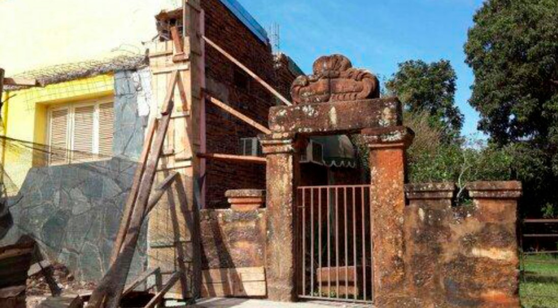 Un muro con piedras adheridas con cemento se levantó sobre el pórtico con dintel monolítico“Como integrantes de un equipo de investigación que tiene directa relación con la preservación y la protección al cuidado de nuestro patrimonio misionero, solicitamos a las autoridades referentes que procedan frente a este hecho resguardando los bienes patrimoniales, ya que este tipo de actos están generando destrucción y deterioro en la conservación de una de las postales más antiguas de Misiones”, señalaron los investigadores de la Red de Activistas Patrimoniales de la Facultad de Humanidades y Ciencias Sociales, de la Universidad Nacional de Misiones.