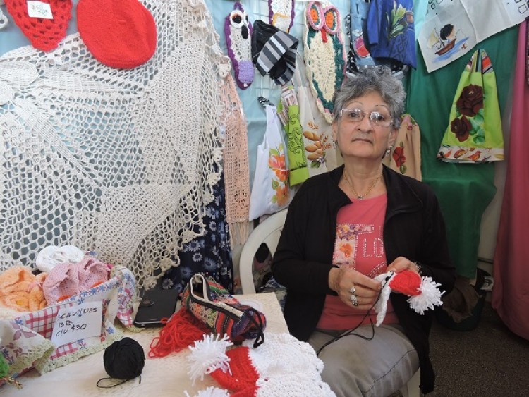 Desde muy joven vivió en Villa Cabello junto a su esposo, debió hacerse cargo de las tareas del hogar y el cuidado de sus hijos. Sin embargo, Teresa Cárdenas nunca dejó de trabajar y cumplir con sus clientes a quienes ofrece las más variadas creaciones como tejedora. “Vengo a trabajar, a cumplir horarios y responsabilidades. Con esto me distraigo, si vendo bien y si no, comparto lo que aprendí. Muchas personas quieren aprender así que les muestro mis técnicas, los puntos. Comparto el conocimiento porque me gusta ser libre y no esconder lo que una sabe es eso”, lo dice convencida.De joven, luego de haberse casado, Teresa aprendió el oficio con una vecina que, al igual que ella, le enseñó sus habilidades. “Como mi marido siempre estaba trabajando y yo quedaba sola, una señora del interior me enseñó. Me iba a la 1 de la tarde y allí hasta las 5 tejía, hacía crochet”, relató. Entre sus productos, Teresa ofrece remeras de diferentes tamaños, colores y tejidos, agarraderas de cocina, adornos para el hogar, porta encendedores, manteles, boinas y escarpines, entre otras cosas. “Es una forma de pasar el tiempo, un hobby y una manera de estar en el ambiente, compartir y conversar. Muchas personas aprecian el trabajo y lo valoran pero otras no”, comentó.Teresa asegura que asistir todos los días al Mercado tiene que ser algo que le guste hacer porque de lo contrario no funcionaría. “Creen que porque sos grande ya no servís y no es así. Acá todos me quieren, yo le acompaño a mi hija también que hace pintura sobre tela. Mis hijos me apoyan y otros me dicen que para qué voy a perder el tiempo, que me quede en mi casa, pero a mí me gusta. Me levanto a las 6 de la mañana, me arreglo y vengo a cumplir con esto que tanto me gusta”. También se mantiene actualizada con los nuevos productos que existen y opina que “ahora hay hilos más lindos, variados y de calidad. Cuando uno no sabe qué regalar, estos productos son una buena oportunidad”, expuso, mientras culminaba un tejido más.