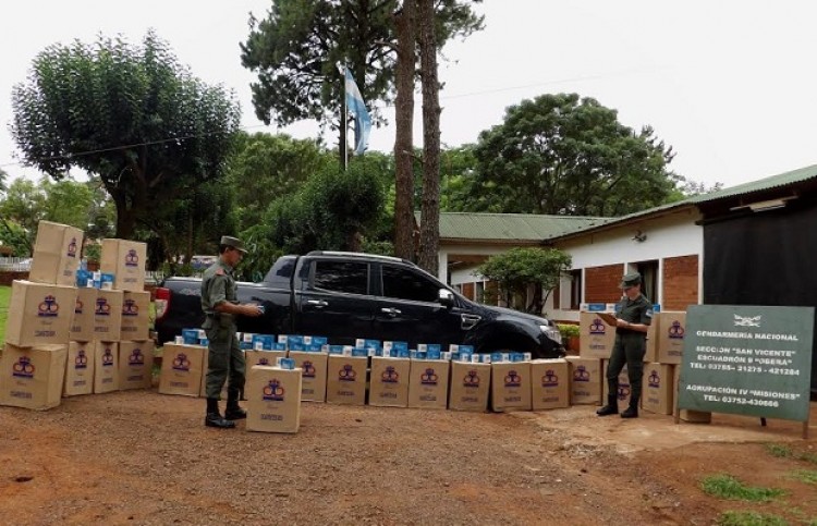 La Sección “San Vicente”, dependiente del Escuadrón 9 “Oberá” de Gendarmería Nacional, secuestró en el transcurso de la madrugada de este martes 1.500 cartones de cigarrillos de origen extranjero, los cuales eran transportados en una camioneta Ford Ranger 4×4.El hecho fue consecuencia de un seguimiento realizada a una pick up de color negro desde la ruta provincial 212 (Picada Zulma), donde los uniformados habían montado un control de ruta que dicho vehículo sobrepasó a gran velocidad y en una maniobra peligrosa.El seguimiento culminó en un camino secundario, más precisamente en un yerbal, donde finalmente fue hallado el vehículo después de ser abandonado por su conductor.En el lugar se procedió al secuestro del vehículo y de las 30 cajas de cigarrillos extranjeros hallados en su interior, cuyo origen se investiga. El avaluó total de los elementos secuestrados asciende a 1.300.000 pesos.Este cargamento se suma a los 28.194 cartones de cigarrillos extranjeros secuestrados en lo que va del año por el Escuadrón 9 de GN.