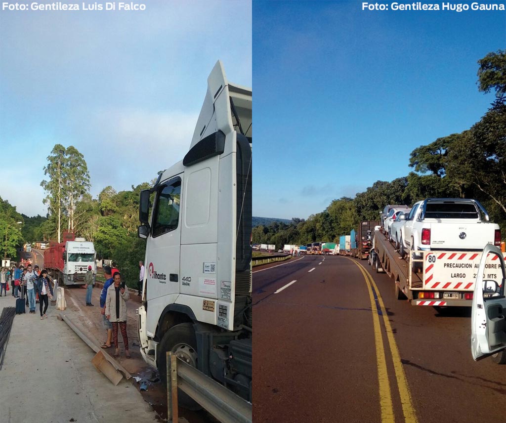 El viaducto une las localidades de El Alcázar con Eldorado.Según fuentes policiales el siniestro sucedió el martes por la noche, a la altura del kilómetro 1520 de la ruta nacional 12. Allí un camión Volkswagen que transportaba vacunos se habría quedado sin frenos y chocó frontalmente con un Volvo 440 guiado por Valdir D. R. (58). El primer camión es de Corrientes, en tanto que el segundo provenía de Brasil, ambos circulaban en sentido contrario.El conductor del VW, Diego R. (35), resultó con lesiones presuntamente leves y fue derivado al hospital de Montecarlo. Hubo daños materiales en ambos rodados.