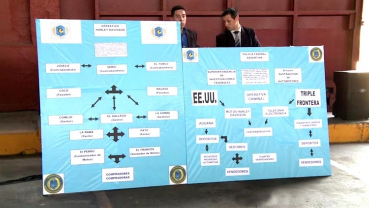 Dos “pesos pesados” del mundillo de la Triple Frontera. Así consideran los investigadores de la Policía Federal Argentina a los misioneros detenidos por su vinculación en la organización dedicada a contrabandear motos de alta gama. Tienen sus fundamentos: uno de ellos -no trascendió cual- fue extraditado a Estados Unidos en 2011, donde cumplió una condena por contrabando y estafa.Así lo pudo confirmar PRIMERA?EDICIÓN?mediante sus fuentes, más allá del hermetismo con el que se trabaja desde el Ministerio de Seguridad de la Nación, al frente de las pesquisas. No obstante aquello, el viernes trascendió el esquema utilizado por los detectives para entender el “rompecabezas” que permitía incorporar al mercado legal motocicletas Harley Davidson que eran traídas “en negro” desde Estados Unidos y China.?Muchas de ellas fueron ingresadas por Puerto?Iguazú, según se desprende del expediente que maneja la Justicia Federal.Es allí donde cobra relevancia el trabajo de “Coco” y “Malevo”, los dos ‘paseros’ misioneros apresados en Puerto Iguazú, quienes aparecen ligados directamente a otros contrabandistas, gestores del automotor e incluso a dos peritos de la Policía bonaerense que colaboraban en el registro “legal” de los rodados en Buenos Aires.Ese “blanqueo”, dice la causa, se llevaba a cabo en registros del automotor de San Fernando, San Martín, Quilmes, Campana y La Matanza, todos en Buenos Aires. Justamente del Registro Automotor 1 de San Fernando surge la denuncia, recién en 2013, que permitió ahora desbaratar a la banda.El rol de los misioneros era determinante. Las motos de alta gama ingresaban al país tanto por el puerto de Rosario como por la Triple Frontera. En este último caso, “Coco”?y “Malevo” entraban en acción mediante el ocultamiento de los vehículos en contenedores que eran declarados con otra mercadería, tal como electrónica, perfumes, indumentaria y hasta bicicletas. Por eso, en los dos allanamientos realizados esta semana en Iguazú, se incautaron numerosos elementos -sobre todo celulares- de contrabando.Esos procedimientos fueron parte de otros 44 realizados en la ciudad de Buenos Aires y en la provincia homónima, donde se incautaron 120 mil dólares, 1.560 euros, 26 motocicletas, documentos de titularidad de las mismas, sellos de mandatarios, documentos de identidad apócrifos, teléfonos celulares, computadoras, cuatro armas de fuego y municiones.La propia ministra de Seguridad de la Nación, Patricia Bullrich, aseguró que en la maniobra podrían estar involucrados personajes de la “farándula” argentina que habrían adquirido rodados a la banda, que después de ingresar las motos por Misiones culminaban el circuito al anotarlas en los mencionados registros con identidades de personas ya fallecidas.