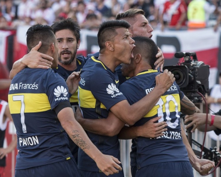 En un partido cambiante y cargado de emociones e intensidad, Boca Juniors sumó tres puntos de oro este domingo en el estadio Monumental, al vencer 3 a 2 a River Plate en una nueva edición del Superclásico, esta vez por la 13ª fecha del torneo de Primera División.Con una interesante reacción anímica cuando peor la pasaba, River se fue al descanso con ventaja de 2 a 1 a pesar de que el visitante se había adelantado en el marcador a través de un gol Walter Bou, a los 13 minutos, después de una muy buena asistencia de Tevez. Cuando estaba desordenado en defensa y se exponía mucho ante cada ataque del rival, River igualó con una volea de Sebastián Driussi, a los 33, luego de una jugada organizada por Andrés D´Alessandro. Envalentonado, el "Millonario" se fue al frente y amplió el marcador con un cabezazo de Lucas Alario, a los 39, tras un centro de Jorge Moreira, donde la defensa de Boca quedó mal parada. El complemento mantuvo la intensidad pero no el cierto orden que habían conseguido sostener en la primera mitad los centrocampistas de uno y otro equipo. En el "golpe por golpe", River erró sus oportunidades de ampliar la ventaja y Carlos Tevez se hizo una fiesta a puro carácter y determinación. Así fue como marcó el empate al salir a disputar una pelota con el arquero Batalla -que erró gravemente- en el minuto 62, y luego puso por delante a su equipo en el 81 con una exquisita definición al ángulo desde fuera del área.Ya con tiempo cumplido, el ingresado Ricardo Centurión sentenció el 4-2.Ahora Boca suma 28 puntos y aguarda un tropiezo de Estudiantes de La Plata para quedar como único puntero del torneo.Fuente: Noticias Argentinas