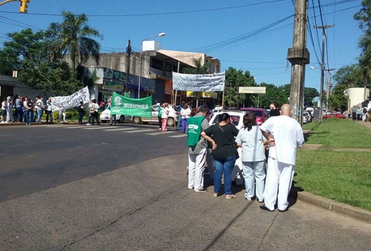 El reclamo por mejores salarios de los trabajadores de la salud enrolados en la Asociación de Trabajadores del Estado (ATE) volvió a tomar la calle, con cortes de tránsito y paro de actividades, que resiente la atención en algunas dependencias como el Hospital Pediátrico.Un grupo apostado en la intersección de Cabred y Marconi impide el paso incluso hacia el puente Posadas-Encarnación, que este lunes luce mucho más fluido que lo habitual.El delegado de Pediatría, Pablo Steckler, explicó a PRIMERA EDICIÓN que “desde septiembre estamos teniendo reuniones con el ministro, reclamando una serie de puntos, entre ellos la equiparación de sueldos de los hospitales Materno Neonatal y el Pediátrico con el de Agudos”.E hizo hincapié en que reciben una remuneración de alrededor de 9.000 pesos mientras que en el otro nosocomio perciben “de 12 mil para arriba, dependiendo del sector en que están, cobran presentismo y bonificación por sector cerrado”.En tanto, el secretario de Organización de Ate, explicó que el acuerdo de 1994, que firmó el Ministerio de Salud Pública, Ate y UPCN, “tiene fuerza de ley, y lo confirmó la secretaria del Ministerio de Trabajo en la audiencia, hasta que se cumpla el salario mínimo vital y móvil, el básico debe llegar a eso”, así que continúa vigente.