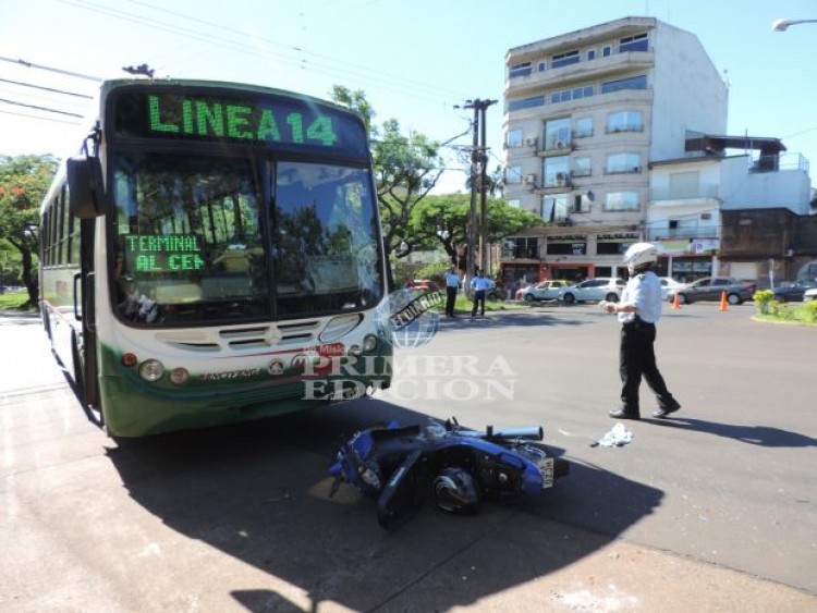 Colisión entre un colectivo y una moto dejó un herido de gravedad en Posadas