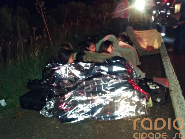 El portal informativo Radio Cidade indica que el siniestro ocurrió próximo a Caibaté BR dejando varios heridos que fueron hospitalizados. El colectivo de la empresa Rio Uruguay volcó en la ruta y uno de los pasajeros quedó con las piernas atrapadas y el personal de rescate logró sacarlo cerca de las 4 de esta mañana según el mismo sitio informativo.Trabajaron intensamente ambulancias de los municipios de Santo Ángelo, San Luis Gonzaga e Ijuí para derivar a los heridos a hospitales de la región de las Misiones. Seis de ellos, los que estarían en más grave estado, fueron derivados al Hospital de Santo Angelo. Para Ijuí llevaron a cuatro heridos, a San Luis Gonzaga fueron seis heridos y el hospital Caibaté ocho personas que ya han sido dados de alta. Los equipos de policía siguen en el lugar del accidente.El testimonio de Claudio, uno de los coordinadores de la empresa de viajes.FOTOS Y VIDEO: Gentileza Radio Cidade Santo Angelo