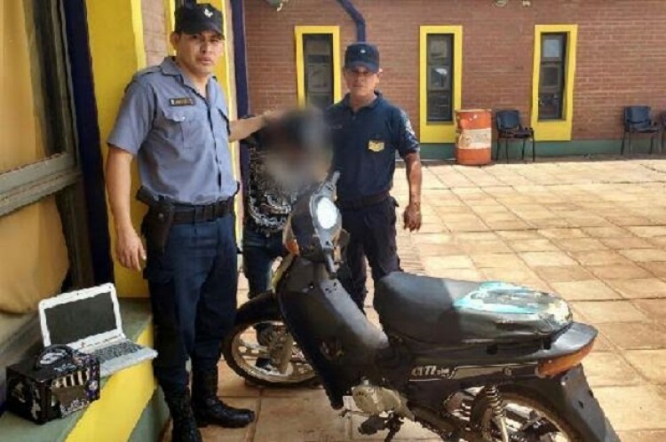 Alrededor de las 13:00 de este domingo, efectivos de la comisaría Octava detuvieron en el barrio Los Potrillos de Garupá a un joven de 18 años identificado como Alejandro F., pero más conocido por el alias de "Piquito".La detención se concretó mediante un allanamiento en el domicilio del involucrado donde fue secuestrada una motocicleta Appia 110 cc, que durante la mañana le había sido robada a Rolando B. (27) en el barrio San Jorge de Posadas, de acuerdo a la denuncia radicada en la mencionada seccional de Policía. Además, en el mismo operativo se procedió al secuestro de una notebook y un equipo de música de los cuales el detenido no pudo determinar su procedencia.Tanto los elementos secuestrados como el sospechoso quedaron a disposición de la comisaría interviniente y del Juzgado en turno, mientras que la moto fue restituida a su dueño.