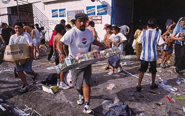 El 19 de diciembre de 2001 hubo importantes saqueos a supermercados y otra clase de tiendas en distintos puntos del conurbano de la ciudad de Buenos Aires. Esa noche, el presidente De la Rúa decretó el estado de sitio y posteriormente en la ciudad de Buenos Aires salieron miles de personas a la calle a protestar contra la política económica del Gobierno que había establecido un límite a la extracción en efectivo del sueldo con el objeto de bancarizar la economía y mantener recursos dentro del sistema financiero (que había padecido una importante corrida en las últimas semanas). Muchas protestas se llevaban a cabo golpeando cacerolas, por lo que se las denominó "Cacerolazo".Se sucedieron también protestas durante la madrugada del 20 de diciembre, frente a la casa del ministro de Economía Domingo Cavallo y en la Plaza de Mayo, que fueron reprimidas. A pesar del estado de sitio decretado por De la Rúa, las calles de Buenos Aires y de otras ciudades del país se llenaron de protestas.En la madrugada renunció Cavallo. En la mañana del 20 de diciembre quedaban unos pocos manifestantes entre los que principalmente se encontraban oficinistas, empleados, amas de casa, niños, y comenzaron a arribar miembros de organizaciones políticas.El desenlace se veía venir.