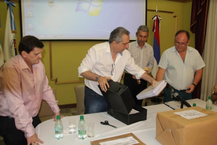 El gobernador Hugo Passalacqua presidió esta mañana el acto de apertura de sobres para la licitación de obras en el arroyo Mbotaby, que atraviesa una amplia zona de la ciudad de Oberá y que, en ocasiones de fuertes precipitaciones, provoca la inundación de cientos de familias que residen en zonas aledañas al cauce. En Sala de Situación de Casa de Gobierno, acompañado por el ministro de Hacienda, Adolfo Safrán; el subsecretario de Obras y Servicios Públicos, Marcelo Bacigalupi; y los integrantes de la Comisión de Apertura de la Licitación, se efectuó el acto para el que se presentaron cuatro empresas oferentes. También estuvo presente el intendente de Oberá, Carlos Fernández.En una primera etapa se concretarán 900 metros de un total de 5.100, con recursos de Rentas Generales. La obra permitirá, además del encauzamiento propiamente, la recuperación de espacios privados actualmente ocupados por el arroyo y áreas inundables que facilitan la proliferación de mosquitos vectores de enfermedades como el dengue. Asimismo, se podrán incorporar calles tipo paseo peatonal y vehicular, en un entorno amigable con el medio ambiente. El saneamiento, se estima, beneficiará directa e indirectamente a unas 25 mil personas.