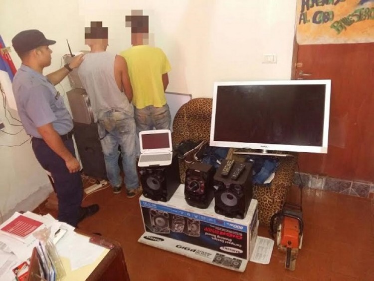 Este lunes por la mañana, personal de la comisaría de El Soberbio intervino en un comercio de la calle Chivilcoy de esa ciudad donde Claudiomiro D.S. (25) manifestó que a las 8:00 constató que le habían sustraído gran cantidad de pantalones de jean para caballeros, camperas, zapatillas, una notebook y hasta una motosierra.Los uniformados recorrieron el predio en cuya parte posterior hay una casa y notaron que conectaba a través de los techos con una vivienda de dos plantas normalmente deshabitada, pero donde presuntamente ingresaban personas desconocidas. Con autorización y en compañía del propietario del inmueble en cuestión, los uniformados ingresaron y encontraron ocultos debajo de un colchón a dos jóvenes de 17 años con frondoso prontuario delictivo y conocidos por los alias de "Chicharrita" y "Pomelo". Junto a ellos estaban los elementos sustraídos al comerciante.Además, en el mismo lugar los policías secuestraron un minicomponente musical de gran potencia que un día antes había sido sustraído de la vivienda de Jorge S. (37), residente sobre la avenida San Martín de El Soberbio. Este último damnificado agregó que también le habían robado un televisor LED de 47 pulgadas, por lo que los policías siguieron averiguando y establecieron que el LED había sido vendido a un vecino que lo devolvió voluntariamente.