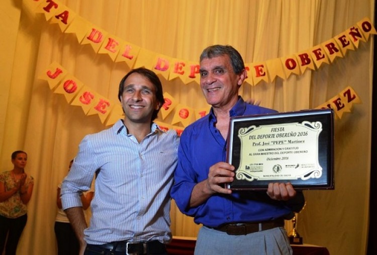La Fiesta del Deporte de la Capital del Monte, cita organizada desde hace años por La Radio Deportiva, la Municipalidad de Oberá y este año con el apoyo del Ministerio de Deporte de Misiones, tuvo su destacado show.El reconocido deportista, entrenador y profesor de Educación Física, Jose Ubaldo “Pepe” Martínez recibió el cariño de los deportistas en reconocimiento a la trayectoria y gran aporte que brindó y sigue dando en Oberá. Este año la Fiesta llevó su nombre nada menos.El premio mayor de la noche y de 2016 fue para el Plantel U17 de Básquet del Oberá Tenis Club. En tanto, la Escuela de Judo Comunitario se hizo acreedora del cheque de diez mil pesos, aporte de la Fundación Nexo Sport.“Celeste” juventudEl plantel U17 de OTC que alcanzó el histórico tercer puesto, atrás de Atenas de Córdoba y Peñarol de Mar del Plata estuvo conformado por: Federico Aby, Mauricio Seybold, Nahuel Vogel, Juan Cruz Ramírez, Taiel Gómez Quinteros, Mariano Gonzalez, Santiago Konaczuk, Martin De Olivera, Tomas Castillo, Gonzalo Pryszczuk. D.T: Matías Martinho, quienes felices subieron al escenario y recibieron  su premio. Un hijo pródigo presenteUn conocido salón de eventos, de una empresa de juegos, del centro obereño fue el punto de encuentro de cerca de 150 atletas locales. La cita contó con la presencia del ministro de Deportes de la provincia de Misiones y un hijo pródigo de Oberá, Rafael Morgenstern, entre otras autoridades.Un total de 40 ternas e innumerables menciones especiales fueron parte de un nueva Fiesta del Deporte de Oberá que se vivió a pura alegría y emoción.LOS GANADORES1-Ajedrez: Santiago Irala.2- Atletismo Varones: Agustín Da Silva.3- Atletismo Mujeres: Abril Caso.4- Automovilismo Pista: Carlos Cabral (Clase 1)5- Básquet Infantiles-Cadetes: Gonzalo Pryszczuk.6- Básquetbol Juveniles-Primera: Taiel Gomez Quinteros (OTC).7- Básquetbol Femenino: Mayra Solis.8- Bowling: Omar Rossler.9- Enduro- Cross: Rafael Nakatzuka.10- Fútbol D.D.I: Hector Montero (Aemo).11- Fútbol Juveniles: Franco Rivas (Olimpia-San Antonio).12- Fútbol Primera: Angelo Maffini (Olimpia-San Antonio).13- Fútbol LIFA: Pablo Fuglistaler (Prof. Libre).14- Fútbol Club Unión: Elvio Baroni (Educación).15- Fútbol Femenino: Yeni Marquez de Bastos (C.A.O.).16- Jiu Jitsu: Edgardo Da Vega.17- Gimnasia Aeróbica: Brisa Gimenez.18- Gimnasia Rítmica: Luana Schulz.19- Golf: Silvia García.20- Handboll: Sebastián Zacharuk.21- Hockey Mujeres: Melisa López.22- Hockey Mamis: Sandra Chamula.23- Hockey Varones: Gerónimo Ascona.24- Judo: Tamara Cañete.25- Karate: Víctor Gómez (Escuela Municipal).26- Karting: Yoryi Kibysz.27- Voley Mujeres: Dana Kokil.28- Natación Varones: Germán Rossler.29- Natación Mujeres: Agustina Flores.30- Pádel: Orlando De Olivera.31- Patín Artístico: Oriana Drisner.32- Picadas: Ariel Cenedese.33- Rugby: Lean Ferreyra.34- Tenis de Mesa: Franco Da Silva Santiago.35- Voley Varones: Martín Chaparro.36- Súper Liga Básquet: Daniel Pizzutti.37- Bochas: Eduardo Ariel Vignolo.38- Gimnasia Artística: Danila Cane.39- Pesas: Emanuel Liedke.40- Korfball: Martin De Olivera.  RECONOCIMIENTOSGastón Vancsik: por su retorno al automovilismo en PistaEscuela de Fútbol Olimpia San Antonio: por su gran labor con niños y jóvenes.Matías Rea: por la tarea como dirigente al frente de la Federación Misionera de Tenis de Mesa.Julio César Pascale: destacada actuación en CrossFit.Parroquia Cristo Rey: por el desarrollo de la práctica deportiva.Paula Mira: por la trayectoria en Natación.Gonzalo Proenza: por su destacada actuación como entrenador de Básquet Femenino.Valentino Mattive: por su participación en el Karting nacional.Plantel U17 Básquet OTC: por su actuación en el Torneo Nacional de Clubes.Jorge “Chino” Flores: por su importante tarea en Atletismo Adaptado.A los Deportistas que participaron en los Nacionales Evita en Mar del Plata y Córdoba:-Patín: Oriana Drisner y Sabrina Lunge-Natación: José María Flores y Santiago Caso.-Natación adaptada: Sub-16: Rafael Solano -Atletismo convencional: Sub-14 femenino: Micaela Álvarez de Olivera, Brenda Gonzáles y Daniela Romero. Sub-14 masculino: Gabriel Jacoboski, Gastón Benítez (Oberá) y Luis Pare.Sub-16 femenino: Abril CasoSub-16 masculino: Sebastián Batista, Franco Miller, Michael Dlutowski, José Cristen y Lucas Clark.-Atletismo AdaptadoSub-14: Celeste Maricel Dos Santos (Intelectual), Anayeli Ester Dino (Parálisis Cerebral), Lara Ailen Szulepa (Motora)Sub-16: Mahira Daniela Bergallo, Maricela Fátima Barboza (PC)Sub-18: Vanina Ayala (Intelectual), Ricardo De Jesús, Marianela Claros Correia (PC), Sabrina Rivara (Motora), Nicolás Machado (Visual).-Boccia (deporte adaptado)Fabián Espínola (Sub-18 Individual).-Levantamiento de Pesas: Sub-15, Emanuel Liedtke (Oberá), categoría 62 Kg. Juan Bautista Vignolles (Oberá), categoría 77 Kg.-Acuatlón: Sub-14 masculino. Joaquín Daneluk (Oberá). Sub-16 femenino: María Agustina Flores (Oberá). Sub-16 masculino: Tobías Flores (Oberá). Barón Dalmau (Oberá).-Karate: Sub-15 femenino: Verónica Gómez -Judo: Sub-14 masculino: Jeremías Lesque (44kg), Octavio Laurencio (53kg), Axel Andino (64kg). Sub-14 femenino: Milagros De Lima (40kg) Maira Machado (44kg), Yoselin Ávalos (53kg). Adultos Mayores: Norma Correa y Sara González.Juegos Argentinos de Playa: Sebastian Zacharuk, Gonzalo Fernández y Sol Daneluk.