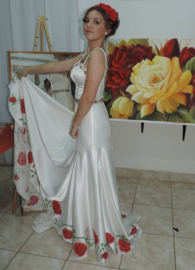 Toda la vida pintando. De niña con lápices, en hoja canson, cartulina o el cuaderno, de adolescente sobre tela. Siempre haciendo cartelitos, letras y dibujos.Emprendiendo el camino hacia la pintura. Probando los acrílicos y los óleos. Descubriendo nuevas técnicas y pintando sobre todo tipo de superficies, muros, cuerpos y telas.Y cuando pensaste que ya pintaste de todo viene tu hija y te dice que quiere que le pintes su vestido de recepción. Ese vestido que llevará a su fiesta. Una ocasión muy importante para ella. Y quiere que le pinte nada más y nada menos que rosas.Entre la emoción del desafío y los nervios para pintarlo, y en una gran mesa sólo para los 10 metros de tela satén color tiza, que formaban el precioso vestido con cola, costurado por la diseñadora Mirta Palacio, emprendí mi última aventura… Rosas para Rosario.Rosario es muy decidida, y con una personalidad avasallante, ella diseñó su vestido desde el más mínimo detalle. Y que haya solicitado mi participación con la pintura significaba mucho para mí.Así que nuevamente el pincel en mis manos y los colores en la paleta, para pintar quizás una de las cosas más importantes de mi vida, y no por pintar el vestido en sí, sino porque mi hija me lo había pedido.Rojo bermellón, naranja y verdes… y las rosas fueron tomando forma.Y la sonrisa de mi hija mostraba satisfacción con el resultado y ese sin dudas fue mi mejor regalo.Ella lució radiante su propio diseño inspirado en el estilo ucraniano, con rosas pintadas por su mamá. Y les digo amigos que la emoción no me cabe en el cuerpo.ColaboraClaudia Olefnik. Artista plástica. Responsable del Taller Monarcas. En Facebook. 0376-4720701