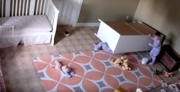 VIDEO: con dos años salva a su gemelo después de que le cayera un mueble encima