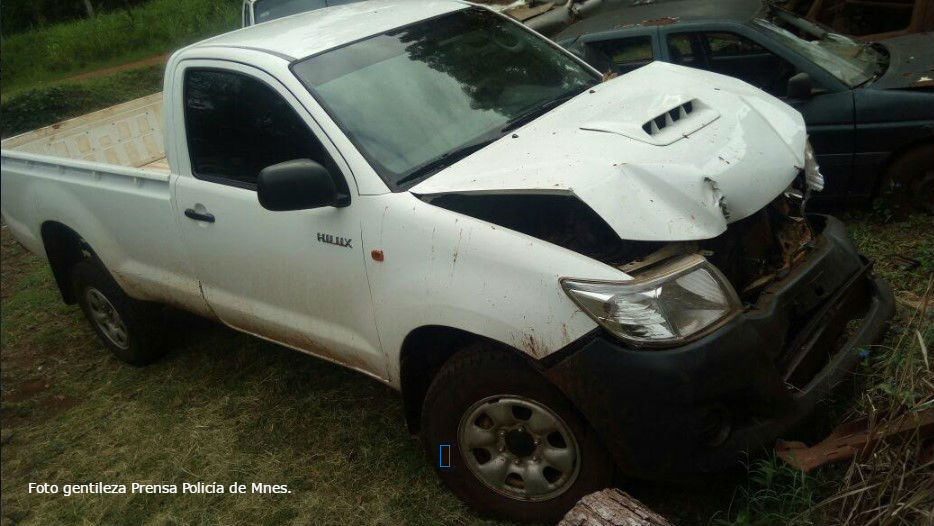Esta madrugada, a las 02.50 hs, efectivos de la seccional 2ª de Eldorado hallaron la camioneta a metros de la avenida Fundador.El rodado presentaba importantes daños tras un siniestro vial. Llevaba colocado un dominio con pedido de secuestro desde la comisaría de Campo Viera.