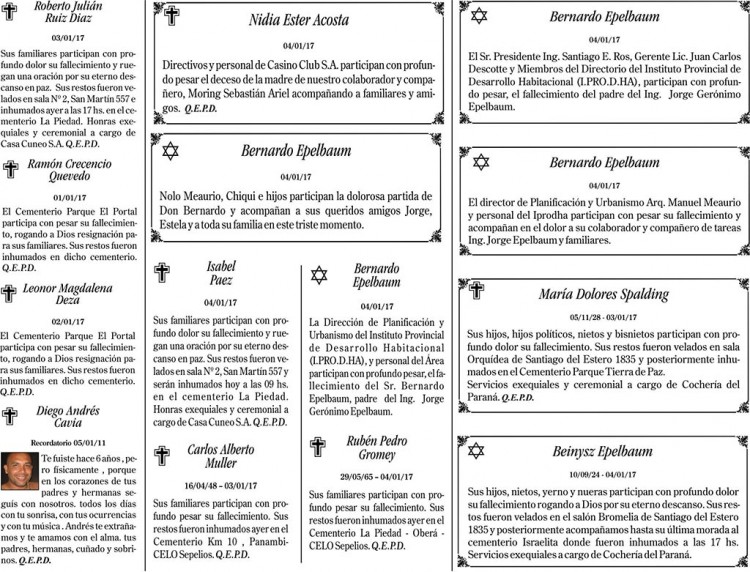 Fúnebres del jueves 5 de enero de 2016