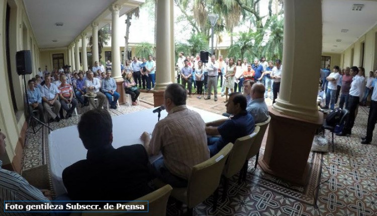 El acto se realizó en el patio de Casa de Gobierno, junto al vicegobernador, Oscar Herrera Ahuad; el ministro Coordinador de Gabinete, Adolfo Pischik; el ministro de Hacienda, Adolfo Safran; el presidente de Vialidad Provincial, Leonardo Stellato; y otros funcionarios del Poder Ejecutivo.“La verdadera convocatoria era sentirnos espalda con espalda, el 2016 fue un año de vacas gordas y este año que estamos iniciando va a ser un año duro. Quiero hacer pública mi gratitud porque ustedes siempre estuvieron dispuestos a gobernar. Brindamos a la Nación gobernabilidad, y agradecemos el apoyo que también recibimos", subrayó el gobernador haciendo hincapié en la actual coyuntura. "Está muy delicada la situación en Nación y cómo nos plantamos ante esto, y yo con muchas ganas", enfatizó. "Acá somos políticos, el político debe salir de forma positiva, salir a recaudar, salir a pelear. La cosa va a estar difícil en los pedidos que me hagan. Pero es en beneficio del pueblo misionero. Hay que cuidar la plata de la gente”, señaló Passalacqua ante los mandatarios municipales.“A mí me quedaron por el camino cientos de sueños que no los voy a poder hacer y eso es frustrante, pero cambió el escenario. El pueblo tomó su decisión y tenemos que adaptarnos a la realidad. Estamos con el freno de mano puesto a la economía nacional y eso nos afecta, pero nos tiene que poner más cerca de la gente. Tenemos un Estado fuerte, una provincia fuerte, vamos a ponernos en situación, no gastar más de lo que tenemos, no debemos endeudarnos, no tomar fiado. Hay provincias que están en muy difícil situación financiera”, añadió.Además resaltó que “nosotros estamos en una buena posición para el desafío que se viene; la situación es difícil, estamos en épocas de vacas flacas, pero las vamos a hacer engordar”.La entrega de cheques se hizo con fondos provinciales provenientes de distintos convenios destinados al mantenimiento de caminos de tierra; obras por convenios con municipios de la Dirección Provincial de Vialidad y fondos para arreglo de escuelas, convenio con la Dirección General de Arquitectura.Por otra parte se entregaron adicionales de Coparticipación a municipios por un total de 1.005.300 pesos.“Vamos a reforzar el tema de caminos, entregaremos más máquinas el lunes. No vamos a parar, estamos licitando el puente, traeremos empresas extranjeras. No estamos parados ni frenados, sino en una posición correcta. Nosotros estamos acá por la gente, por el misionero. Vamos a inyectar los pesos que tengamos en las cosas productivas como el trabajo. Yo tengo una actitud ante el problema muy positiva. Hay muchas urgencias y tenemos concepto de unidad, todos pensamos lo mismo. Hay pueblos que necesitan más que otros, pero todos somos partes de un mismo pensamiento político y vamos a salir adelante”, expresó el gobernador.A lo cual agregó que “no es fácil para el gobernador decir que la cosa está fea, no me hubiese gustado, pero es la realidad, todo está difícil, pero debemos tomar conciencia y vamos a cumplir con los compromisos. Vamos a trabajar por mayores esfuerzos recaudatorios, mayores esfuerzos de contención del gasto”.“Estamos con buen ánimo, me encantan los desafíos y creo que estamos ante una gran oportunidad, las crisis son grandes oportunidades; y hay que estar cerca de la gente, hay que salir y estar con la gente”, remarcó Passalacqua a los alcaldes.Luego el mandatario y sus colaboradores compartieron un pequeño brindis con todos los intendentes, como gesto de camaradería en el comienzo de año.