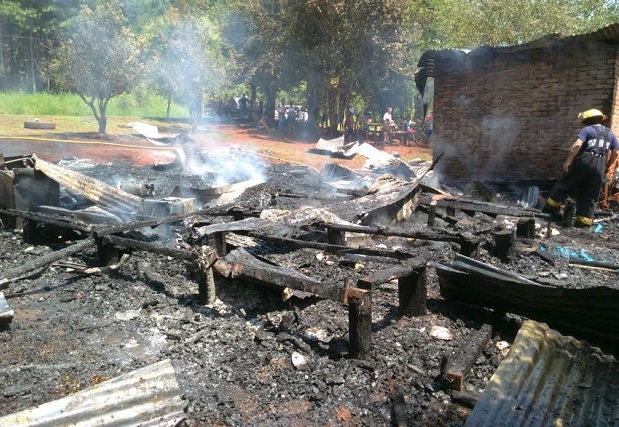 Se investigan las causas por las que en el inmueble propiedad de Clementina V. (40), donde vive con sus cuatro hijos, se desató el fuego que dejó daños materiales totales.Por fortuna, no se registraron personas lesionadas.Trabajó en el lugar personal de Bomberos y de la comisaría seccional Tercera de Eldorado.Fotos: Prensa Policía de Misiones