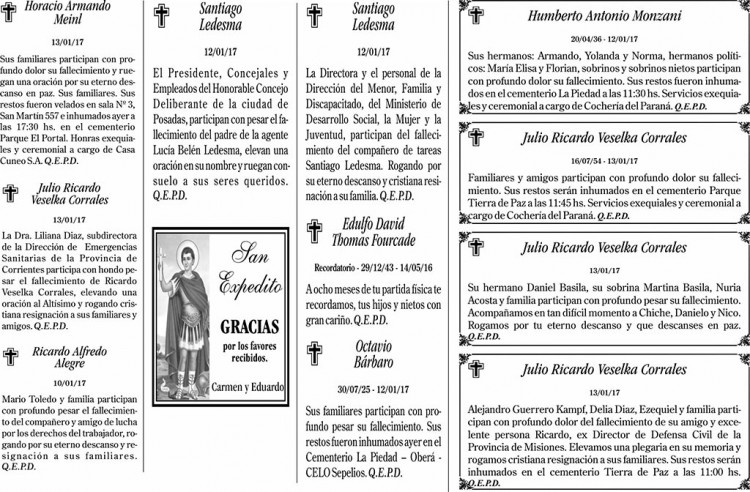 Fúnebres del sábado 14 de enero de 2017