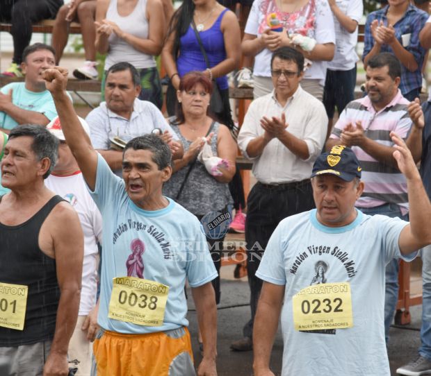 Bajo un cielo gris y lloviznas intermitentes, a partir de las 10:00 de la mañana de este lunes, se recordó la partida de los ocho nadadores que murieron en la Tragedia del Paraná hace ya siete años. La cita fue en la costanera de Posadas, sobre Roque Saenz Peña y Santa Fe, donde se encuentra el monumento de la Virgen Stella Maris.En esta oportunidad la conmemoración arrancó con una maratón organizada por Oscar Gaona y el grupo maratonista “Los Galgos”, integrado por Roberto Carlos Mendez y Araceli Montaño, encargados de la inscripciones y logística de la carrera. La maratón tuvo una concurrencia de aproximadamente 150 inscriptos de distintas partes de la provincia, Corrientes y Paraguay. Además, familiares, amigos y participantes rindieron homenaje a los deportistas fallecidos con una misa antes de largar la carrera.Posteriormente, estaba previsto un almuerzo comunitario de pollo a la valenciana, a las 12:30, para todas las personas que quieran compartir el evento. Por la tarde se prevé que toquen bandas musicales.Fotos: J.C. Marchak