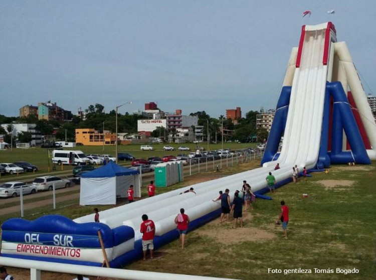 Según el gerente general de Sur Emprendimiento, Juan Manuel Arana, es el tobogán más grande y alto del mundo, así lo confirmó al diario La Nación: “Estamos viendo algo único, sensacional. Nos sentimos orgullosos de presentar el tobogán 100% inflable, el más alto del mundo”, indicó, y que para tal propuesta se utilizó ingeniería francesa, textilería china y se adquirieron los motores en Japón.“Esto es algo único en el mundo, nunca antes montado en otro lugar. No se tiene algo similar”, sostuvo sobre la atracción veraniega que tuvo un inversión de menos de 300.000 dólares.Además, el gerente confirmó que se podrán lanzar del inflable los niños a partir de los 6 años, siempre y cuando sean autorizado por los padres.El espacio estará disponible al público de lunes a lunes en diferentes horarios: de lunes a jueves, la gente que desee lanzarse desde la cúspide puede hacerlo entre las 15:00 y 21:00, abonando 10 mil guaraníes. Y para quienes acuden para divertirse y quieren lanzarse por uno de los tres carriles, de viernes a domingo, pueden hacerlo de 9:00 a 23:00, abonando 15 mil guaraníes. La empresa que tiene a cargo la recreación ofrece asistencia médica y primeros auxilios, para socorrer en caso de que surjan inconvenientes: “Es 100% seguro y pueden subir solos niños de 6 o 7 años”, aseguró Arana, según publica el sitio hoy.com.py.