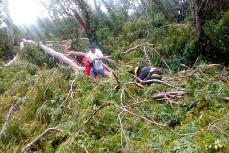 Alrededor de las 13:00, policías debieron socorrer a un hombre de 30 años, identificado como Jorge D. N., quien resultó aplastado por un árbol cuando se desplazaba a bordo de una motocicleta Motomel de 150 cc por la mencionada arteria provincial. De acuerdo a las averiguaciones, la víctima circulaba por una zona de vegetación y de grandes arbustos, donde las fuertes precipitaciones y el intenso viento habrían ocasionado el desprendimiento de un eucaliptus de gran tamaño, que cayó directamente sobre él. El conductor resultó con lesiones de consideración y fue trasladado a Oberá para recibir asistencia médica de mayor complejidad. En el lugar del accidente actuaron la comisaría local y la Policía Científica.