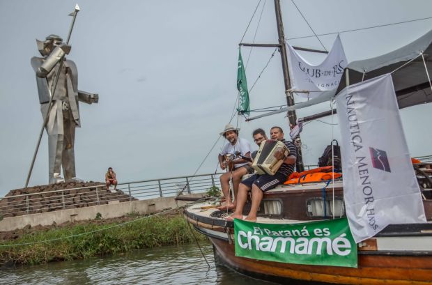 La cuarta edición del raid náutico “Paraná es Chamamé” llegó a la costanera y brindó un gran festival chamamecero.“El Luchador”, un viejo bote modelo 1953 realizado en madera de cedro y timbó, fue refaccionado para concretar esta travesía, encabezada por el músico Joselo Schuap y que unirá Misiones y Corrientes, a través del río Paraná y de la música chamamecera. La embarcación partió el pasado sábado de San Ignacio y llegó el domingo a la costanera capitalina, donde su tripulación, conformada por músicos, amarró a los pies del monumento a Andresito y brindó un espectáculo que incluyó hasta una improvisada bailanta.En esta oportunidad, Schuap recordó la travesía del año pasado donde se aprovechó para recoger alimentos y ropa para las familias que fueron afectadas por las inundaciones de la Isla de Apipé, en Ituzaingó, Corrientes. Los músicos desplegaron el tradicional repertorio de Joselo para describir vivencias sociales y rescatar a aquellos personajes urbanos que forman parte de la ciudad. En este sentido, el artista también recordó a uno de los mayores exponentes del folclore Horacio Guaraní, quien falleció a los 91 años, y luego habló acerca de la represión al pueblo mapuche en el sur.Un gran número de público y transeúntes se hicieron presentes disfrutaron de la música litoraleña y acompañaron con sus aplausos a los músicos Sergio Favot en charango; Neco Swiderski en bajo; “Maka” Sequeira en guitarra; Yoni Mombaje en acordeón y David Nanio en la batería, quienes acompañan a Joselo en esta travesía náutica. La música fue subiendo el ritmo y las parejas se animaron a bailar en la costanera, improvisando una bailanta chamamecera a orillas del Paraná. Con respecto a esta, su cuarta travesía, Joselo se refirió a la nueva embarcación que los llevará hasta la capital correntina para participar en el festival más importante de la música chamamecera “el barco es como nuestro colectivo pero del agua, pero mucho mas viejo todavía, ‘El Dino’ (ómnibus) es modelo 61 y el barco del 1953 hecho de madera de timbó y cedro, estaba en el partido bonaerense del Tigre, se estaba pudriendo y nosotros lo recibimos de su dueño quien confió en nosotros. A partir de junio de 2016, con la ayuda de nuestros amigos pudimos arreglarlo y nos emocionamos profundamente porque era lo que buscábamos: un barco antiguo que no sea la ostentación de la navegación, porque no somos gente potentada que andamos en un gran yate, somos laburantes pero tuvimos el privilegio de llegar a él con pocos recursos pero poniendo mucha mano laburando”. Largo camino“El Luchador” zarpó este martes rumbo a la capital correntina donde tienen previsto llegar el sábado 22 para subir al escenario del festival al día siguiente.“El Paraná es Chamamé, es un derivado del festival nacional del chamamé. Están las bailantas chamameceras como el de Puente Pexoa y otros campos cercanos que explotan de público, nosotros le dimos este aporte para que la gente pueda mirar el río ver que llega un barco con músicos chamameceros tocando arriba” señaló Schuap. Además agregó “cuando llegamos debajo del puente General Belgrano, que une Resistencia con Corrientes, salen a nuestro encuentro una infinidad de canoas artesanales con motor de ambas capitales, nos abrazamos y vamos rumbo a la playa para cantar para ellos”. Por otra parte, el músico invitó para el año que viene a todas aquellas personas que posean embarcación para animarse a realizar la quinta travesía náutica “queremos llegar con la mayor cantidad de misioneros por agua a la Fiesta Nacional del Chamamé”. Finalmente, luego de participar en el festival correntino, los músicos misioneros seguirán camino rumbo a Córdoba donde se presentarán en el Anfiteatro Próspero Molina de la localidad cordobesa de Cosquín, donde participarán el domingo 29 en la fiesta más popular del folclore argentino.