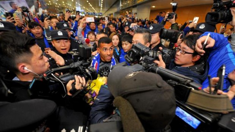 Tevez, de 32 años, llegó sonriente al aeropuerto internacional de Shanghai rodeado de policías que le ayudaron a abrirse paso ante una multitud que gritaba "¡Carlos! ¡Carlos!".Los aficionados, muchos vestidos con los colores del Shenhua y algunos con la camiseta de la Albiceleste, recibieron al jugador con grandes fotografías y banderas de Argentina. Tevez recibió un ramo de flores y una bufanda roja y azul de su nuevo club.El antiguo delantero del Manchester City, Juventus y Boca Juniors, entre otros, no hizo declaraciones. "Espero que Tevez pueda llevar al Shenhua a la gloria. No espero que ganemos la Liga de Campeones de Asia, pero sí llegar al menos a los cuartos de final", señaló entusiasmado Yan Xiang, uno de los hinchas que acudió al aeropuerto.Tevez, que cumplirá 33 años el 5 de febrero, percibirá una cifra cercana a los 38 millones de euros (40 millones de dólares) por temporada en cada una de las dos que firmó con el conjunto chino, lo que convertirá al internacional argentino en el futbolista mejor pagado del mundo, por delante de Cristiano Ronaldo y de su compatriota Lionel Messi, considerados los mejores jugadores del planeta.La transferencia de Tevez de Boca Juniors al Shenhua se realizó a cambio de 10 millones de dólares, informaron fuentes cercanas al jugador a la AFP. El fichaje del atacante se une al de otros importantes jugadores latinoamericanos, atraídos por las grandes sumas de dinero que ofrecen los clubes chinos. Falcao, a las puertasHace unas semanas el Shanghai SIPG, que entrena el extécnico del Tottenham Hotspur Andre Villas-Boas, fichó por unos 73 millones de dólares, según la prensa, al centrocampista brasileño del Chelsea Oscar, de 25 años.Tras el fichaje de Tevez la administración general del deporte chino anunció que quiere frenar las "inversiones irracionales" de los equipos y "limitarlas de manera razonable".La Federación China de Fútbol anunció esta semana que cada club de la Super League solo podrá alinear a tres jugadores extranjeros, en lugar de los cuatro, límite existente hasta ahora.Este anuncio habría abortado la salida del goleador colombiano Radamel Falcao, en las filas del Mónaco, al Tianjin Quanjian, anunció el presidente del club Shu Yuhui hace dos días.La tendencia de los fichajes millonarios empezó a darse en el mercado de enero de 2016, cuando la Super League China (CSL) había adelantado a la Premier League inglesa con una suma récord de 331 millones de euros por el fichaje de 163 jugadores, según el portal Transfermarkt.Además de Tevez y Oscar otros jugadores de renombre de la competición son el argentino Ezequiel Lavezzi (ex-PSG, ahora Hebei Fortune), el brasileño Hulk (ex-Zenit, ahora Shanghai SIPG), su compatriota Ramires (ex-Chelsea, Jiangsu Suning) o el italiano Graziano Pellè (ex-Southampton, Shandong Luneng).Fuente: Agencia de Noticias AFP/NA