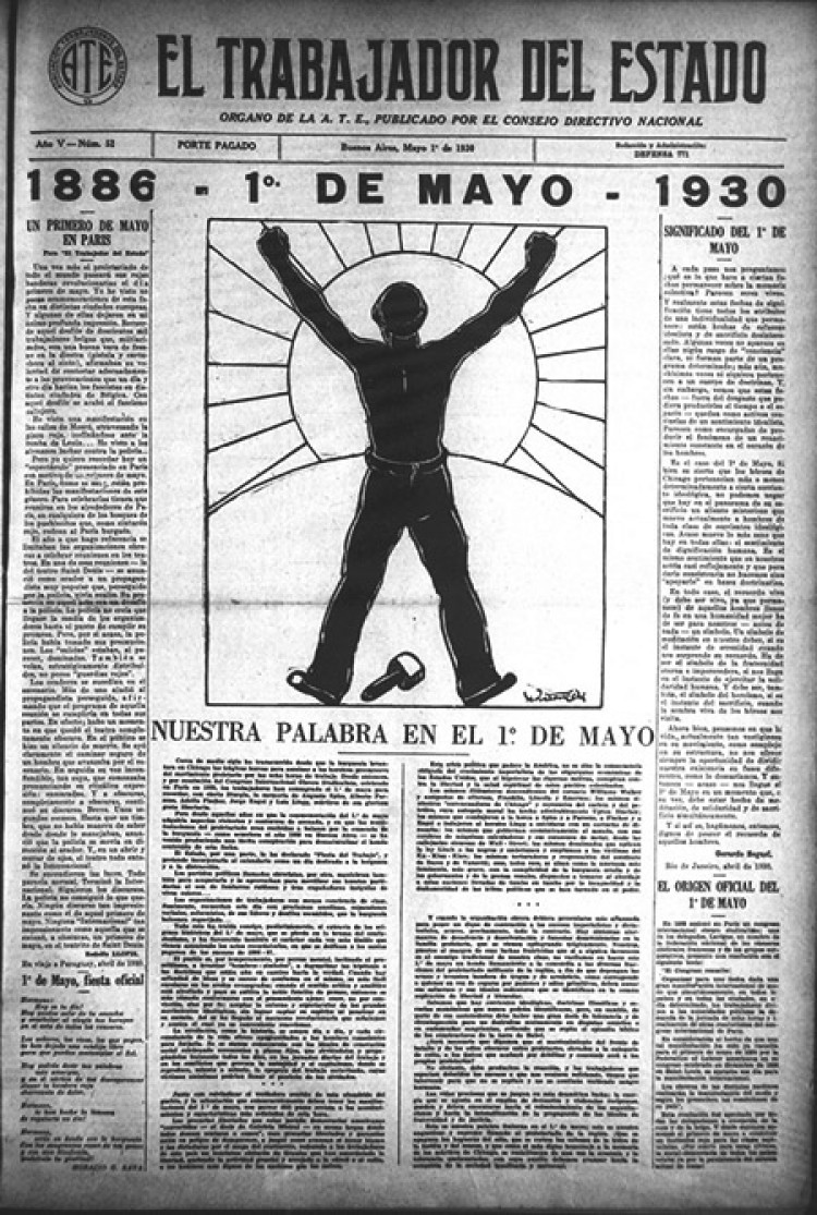 uistas Nicolás Sacco y Bartolomé Vanzetti que fueron condenados a muerte por el presunto robo a mano armada y asesinato de dos personas en 1920 en EEUU. Finalmente Mañasco fue liberado y Sacco y Vanzetti ejecutados ese mismo año. La mirada propiaEl periódico se publicó regularmente hasta mediados de la década del cuarenta, cuando dejó de aparecer por razones internas. “Una de las cosas que reflejaba el periódico era el nacimiento de las seccionales. Y hoy, en muchos casos, a la hora de reconstruir la historia de alguna de las seccionales que existen en el país, recurrir a los archivos de El Trabajador del Estado puede ser una de las únicas formas de acceder a esa información ya que en muchos casos no quedan siquiera las actas fundacionales” explica a Sudestada el periodista, escritor y actual director de El Trabajador del Estado, Marcelo Paredes. “Y a medida que crecía el gremio, crecía el periódico en páginas e incorporaba entrevistas, fotos, ilustraciones, crónicas e informes de las seccionales que germinaban en cada rincón del país. Narrando lo que pasaba en ATE, en Argentina y en el mundo, siempre desde la mirada de los trabajadores”agrega por su parte Hugo Godoy, actual secretario general del gremio a nivel nacional. Luego de una extensa interrupción, El Trabajador del Estado vuelve a salir en albores de la década del setenta y con una línea editorial absolutamente encolumnada al acompañamiento abierto a las políticas y la figura de Juan Domingo Perón. “Unidos y disciplinados junto a Perón hacia la Argentina potencia” se titula en una de las tapas de 1973. Durante 1974, El Trabajador del Estado vuelve a quedar fuera de circulación, esta vez, porque la cúpula sindical de ATE en aquel entonces arribó a un acuerdo con Perón, entendiendo que “ya no era necesaria” la publicación del periódico. Ese año, la Triple A profundizaba las tareas de secuestro y exterminio de militantes y trabajadores en distintos puntos del país. En 1975 saldrían algunos números intermitentemente. Nueva etapaTras la muerte de Perón, el periódico publica inmediatamente una tapa con la figura del presidente fallecido, con la leyenda “Gloria eterna al General Perón. Argentina ha perdido a su conductor”. Y en el número de julio de 1974, la editorial lleva el título: Eva Perón inmortal, junto a una amplia fotografía de Evita. El periódico no volvería aparecer hasta 1984, cuando un grupo de jóvenes sindicalistas –entre ellos Germán Abdala y Víctor de Gennaro- recuperan el gremio de las garras de la intervención que dirigió el gremio durante la dictadura. “Recibimos, además, una organización caotizada administrativamente, seriamente comprometida en materia financiera y, lo que es peor, desarticulada en su estructura, fruto de una política de aislamiento sectorial. Debemos reconstruir el gremio, desterrar el personalismo, el “negocio” particular, pero lo que es más importante recuperar la fe de nuestros compañeros” señalaba el editorial de uno de esos números del regreso. “En ese momento, con la recuperación del gremio, el periódico pasa a una etapa en la que se llamará El Trabajador Estatal y tendrá una frecuencia ocasional. Desde entonces y hasta ahora, no ha dejado de salir nunca” explica Marcelo Paredes. Desde hace unos meses, los ejemplares que se conservan desde 1930 hasta la fecha, fueron digitalizados por el sindicato. Sostiene Hugo Godoy: “Casi todo ese material está hoy digitalizado y convenientemente protegido pero algunos otros originales se perdieron con el tiempo. Nos queda ahora la tarea de rastrear los ejemplares que completen la colección y, por ende, la historia”. Actualmente, el periódico aparece con frecuencia mensual y se distribuye en todas las provincias del país donde ATE tiene afiliados. “Buscamos ser un periódico federal, lo que resulta complejo al tener 170 seccionales en toda la Argentina, pero intentamos que nuestras noticias más importantes y nuestras historias, las luchas de ATE, estén presentes con un criterio federal” expresa Paredes. El secretario general Godoy, cierra aportando que el archivo de El Trabajador del Estado “nos llena de orgullo no sólo por ser portadores de este invalorable bagaje de experiencia, conocimientos y capacidades para abordar el debate entre nosotros y con la sociedad toda; sino también porque nos permite compartirlo con las nuevas generaciones de militantes de nuestras justas causas para proyectarlas hacia el futuro insuflando vitalidad y reinventándonos en este camino permanente en la construcción de una sociedad de hombres y mujeres libres e iguales. Convencidos de que sus páginas de hoy aún testimonian el mismo espíritu sagrado de aquellos que lo fundaron, brindamos por noventa años más de nuestro querido periódico de ATE”.Fuente: Prensa ATE