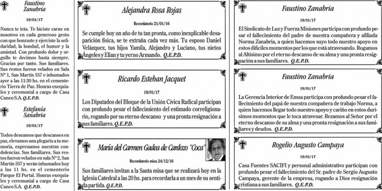 Fúnebres del sábado 21 de enero de 2017