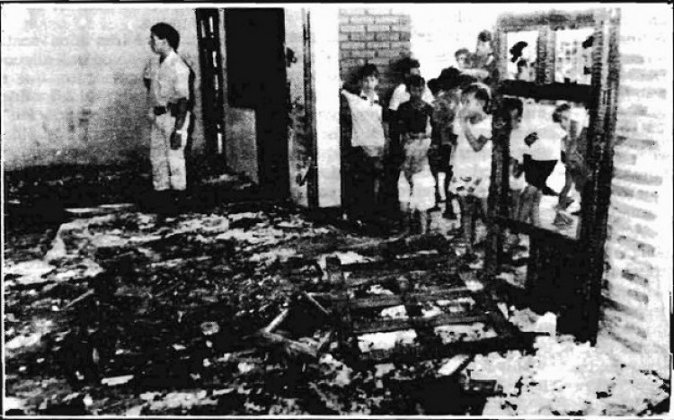 Un incendio producido en la madrugada de ayer destruyó las instalaciones de la capilla Santa Rita de Posadas. El incendio se inició aproximadamente a la 1 y fue detectado por el casero de la iglesia, que por intermedio de un vecino avisó a los bomberos. La dotación "Sur" del cuerpo de bomberos trabajó en el lugar por espacio de dos horas para sofocar las llamas y los peritos se encuentran verificando las causas del siniestro.El párroco del templo, padre Juan Carlos Belgrano, atribuyó el incendio a "un cortocircuito", e indicó que las imágenes de Santa Rita y del Sagrado Corazón no sufrieron mayores daños.Agregó que el Obispado de Posadas fue informado inmediatamente del hecho. "Ha llegado mucha gente con ganas de colaborar" para la reparación de los daños provocados en la iglesia y se abrirá una cuenta bancaria para recolectar fondos destinados a solventar la reconstrucción, anunció el sacerdote.Por su parte, el arquitecto Rubén Marelli señaló que la "pérdida es total". Mencionó que el piso de la iglesla se levantó, por efecto de la alta temperatura provocada por la rápida combustión del cielorraso de madera barnizada.Precisó que ayer por la tarde se quitó el techo quemado de la parroquia "para sacar lo que pueda ser peligroso", dijo. Consideró que las paredes perimetrales "en principio no corren ningún peligro porque es una estructura independiente que no sufrió las consecuencias, pero vamos a limpiar los revoques y a revisar", dijo. Marelli afirmó que las obras a iniciar consisten en "reponer la cubierta de zinc y pisos cerámicos, y habrá una demolición interna de mampostería"."Ya se ha confeccionado una lista de los materiales necesarios para la estructura -puntualizó- como hierro liso del diez y del doce, arena, cemento, electrodos, cal, entre otros".Los interesados en realizar su aporte de materiales, indicó, pueden efectuarlo en la Comisión Vecinal del barrio o en la cuenta bancaria que se abrirá al efecto. Estimó: "Depende de los aportes que realice la comunidad" el tiempo en que se concluirán los trabajos de restauración del templo, aunque se mostró confiado "en que se pueda celebrar misa bajo una nueva estructura dentro de seis meses, aunque no esté listo el piso", concluyó.Como siempre, empecinadosEn conocimiento del vigoroso caracter colectivo que identifica a la feligresía devota de Santa Rita, seguramente que el incendio que ayer destruyó el templo consagrado a esa imagen patronal, levantado ladrillo a ladrillo por una comunidad multiplicada, es una circunstancia anecdótica sobre cuya memoria, desde luego, ya crece lozano el brote del empecinamiento por la reconstrucción. La misa al aire libre oficiada por el padre Juan Carlos Belgrano. junto a los restos todavía olorosos a fuego, fue más que una expresión de voluntad de no ceder ante la adversidad, la consolidación de un grupo humano en el pacto de fe que los liga a Santa Rita, esa Santa procuradora de la realización de lo posible y hasta de lo imposible. La religiosidad no parece consistir en otra sustancia más que en la entrega de la voluntad individual de cada hombre, de cada mujer, a favor indiscriminado del prójimo, fuerza moral que -en nombre de Santa Rita y otras imágenes paradigmáticas- torna factible la bienhechura espiritual de la vida propia y la de los demás.Los devotos de Santa Rita. los que son y los que desde ahora, tal vez, lo serán, asumen que el violento episodio de destrucción por el fuego les ha quitado un santuario amado, erigido desde la hondura insondable de los reconocimientos particulares a la bondad de la Santa.Y también que si lo lograron una vez, la adversidad de hoy es un desafio, una prueba de sostenimiento en la devoción abrazada.Bienaventurado el fuego, entonces, si sirve para sumar además de desolar.(Nota completa publicada por PRIMERA EDICIÓN el jueves 23 de enero de 1992)