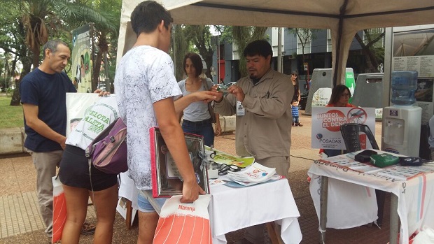 Ambas instituciones llevan adelante esta actividad que se realizó este jueves y se repetirá el viernes, desde las 9, en la plaza San Martín.Además, este jueves estarán a partir de las 17 en el cuarto tramo de la Costanera.El objetivo es recordar a los vecinos los cuidados que deben tener para evitar que el insecto se reproduzca y propague enfermedades vectoriales.Durante la jornada, se repartieron folletos explicativos; se instaló una radio abierta para difundir los síntomas y consejos que evitan el contagio, un stand con dos microscopios para observar las larvas y una exposición de carteles con mensajes preventivos.La secretaria de Salud, Rosa del Carmen Piragine, subrayó “este es un esfuerzo compartido que posibilita una difusión masiva para continuar con la lucha contra el Aedes aegypti”.En tanto que, en representación de Tarjeta Naranja, Fernando Leiton, explicó que “esta iniciativa se da en el marco de las acciones de Responsabilidad Social Empresaria, con el objetivo sensibilizar a la sociedad sobre las medidas para reducir la reproducción del insecto”.