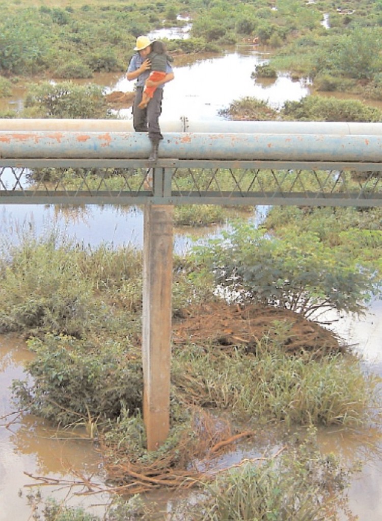 (Nota completa publicada por PRIMERA EDICIÓN el 30 de enero de 2007)La oportuna intervención de una persona que llamó a la policía permitió el milagroso rescate de una niña de apenas cuatro años, que se encontraba ayer a la mañana subida a los caños del acueducto que conduce el vital líquido, desde Posadas hacia Villa Lanús, y cruza sobre el arroyo El Zaimán. La nena, identificada como Alejandra Micaela, quiso cruzar caminando sobre los caños, siguiendo a tres hermanitos mayores, quienes sí lograron llegar a la otra punta mientras que la más pequeña se asustó y quedó varada a unos diez metros de altura, poniendo en riesgo su vida.El insólito y peligroso suceso se conoció a las 11.50, cuando un reportero gráfico de este diario pasaba circunstancialmente por el puente sobre el arroyo El Zaimán y vio como varios curiosos “festejaban” la travesura de varios chicos que habían cruzado caminando el acueducto que lleva el agua hacia Villa Lanús, mientras que una nena que iba con ellos se quedó aferrada a los caños, presa de un ataque de pánico.El fotógrafo llamó de inmediato a la línea policial 101 y a los pocos minutos se hicieron presentes dos dotaciones de bomberos, de Garupá y del cuartel Zona Sur, junto a una ambulancia y otras unidades policiales.En principio, la nena parecía haber llegado sola hasta ese sitio, ubicado sobre el cauce del citado arroyo, que en ese lugar tiene unos tres metros de agua, cubierta por las malezas. Además los tubos que están asentados sobre pilares de cemento, cruzan a unos diez metros de altura sobre el agua, por lo que el menor movimiento en falso de la niña significaría su caída al vacío, con resultados impredecibles para su vida. Entonces las caras de divertimento se trasmutaron en gestos de terror y las expresiones pasaron a ser gritos desesperados para que la pequeña no se mueva.Travesura sin límitesLos bomberos debieron utilizar una larga escalera para acceder al nivel de los caños en un sitio de menor altura al que se encontraba la niña. Desde allí, el oficial auxiliar Espíndola, del cuerpo de bomberos Zona Sur, debió caminar haciendo equilibrio por unos 70 metros hasta donde estaba la chiquita.El bombero llegó hasta la niña y la tomó en sus brazos para desandar de manera valerosa, la distancia que los separaba de la segura escalera donde los esperaban sus colegas. Por obra del… ¿Angel de la Guarda?, la niñita fue salvada y trasladada preventivamente al hospital de Pediatría.Poco después, aparecieron en escena otros niños de 6, 7 y 9 años, quienes dijeron ser los hermanitos de la pequeña y relataron a la policía que al mayor se le había ocurrido realizar la “aventura” de cruzar el arroyo caminando por los caños y al ver a su hermanita en esa situación, se escondieron por miedo a la policía. Se estableció que los hermanitos se domicilian en Itaembé Miní. Los padres de las criaturas no pudieron ser ubicados hasta altas horas de la noche.