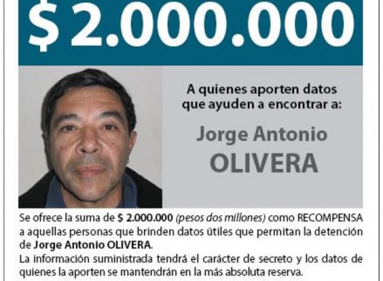 El represor condenado a prisión perpetua por delitos de lesa humanidad Jorge Antonio Olivera fue detenido este lunes, luego de permanecer prófugo desde julio de 2013, cuando se escapó del Hospital Militar.Así lo confirmaron fuentes judiciales a la agencia Noticias Argentinas y detallaron que el arresto se produjo este lunes en la casa de su exmujer ubicada en la localidad bonaerense de San Isidro.La causa por la fuga estaba a cargo del fiscal Franco Picardi, quien llevaba adelante distintas intervenciones telefónicas en su entorno familiar, que finalmente dieron con el dato de su paradero.Fuente: NA