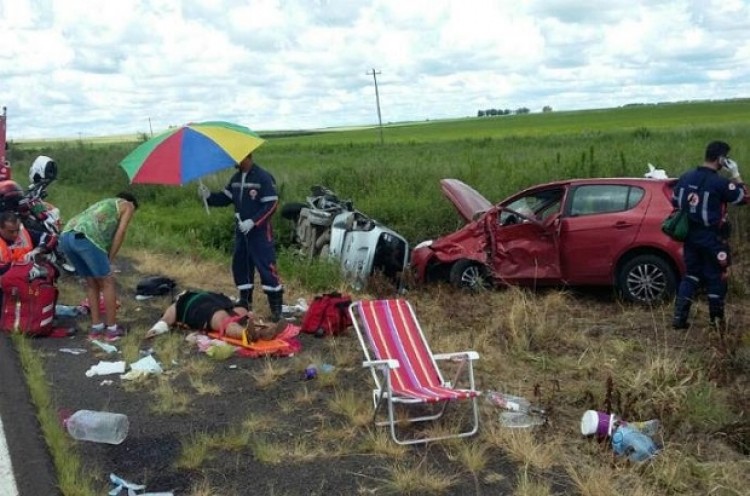 Una colisión entre cuatro vehículos con patentes argentinas dejó por lo menos un hombre muerto (oriundo de Córdoba e identificado como Claudio Gabriel Comelli, según las primeras informaciones) y varios heridos graves, entre ellos cuatro menores.Ocurrió en las primeras horas de la tarde de este miércoles en la ruta BR 290 a su paso por Alegrete, al Oeste del estado de Rio Grande do Sul, cerca de la frontera entre Brasil y Argentina. Al parecer, el origen del incidente fue el pinchazo de una goma de uno de los vehículos involucrados, un Chevrolet Onix que circulaba en sentido Uruguaiana-Porto Alegre, lo que provocó su choque contra un segundo auto, también Onix, que venía por el carril contrario.Luego, un Renault Scenic y un Fiat Palio no pudieron esquivarlos y terminaron colisionando también.Al parecer, la única víctima fatal hasta ahora iba al mando del Scenic y quedó atrapado entre los hierros retorcidos del vehículo, muriendo prácticamente en el acto.Los heridos, cuya identidad, edades y procedencia exacta no se conoce aún, fueron asistidos por bomberos y emergencias médicas, que los trasladaron a un hospital local conocido como Santa Casa da Caridade.Fuente: <a href="http://alegretetudo.com.br/">Alegrete Tudo</a>