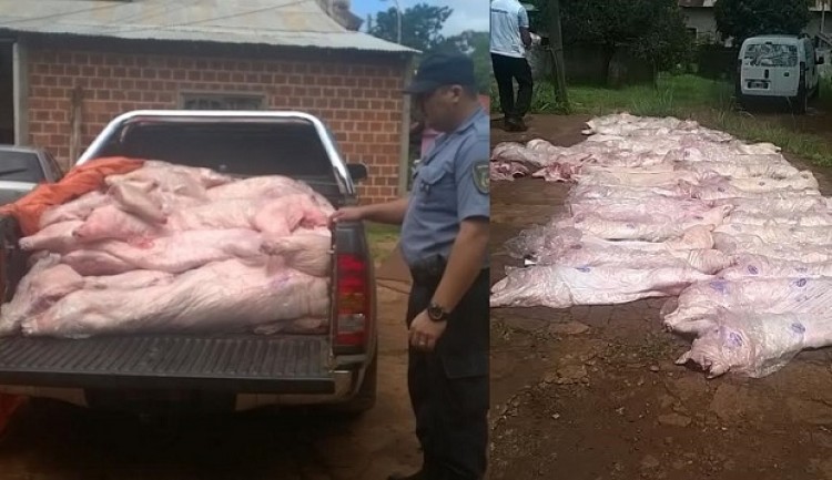 A las 10:00 de este jueves, personal de la comisaría de Montecarlo e inspectores municipales y de Bromatología advirtieron la presencia sobre la avenida Libertador de una camioneta Toyota Hilux con un cargamento de carne porcina.Luego de las verificaciones correspondientes, se constató que en el rodado había 750 kilogramos de carne de cerdo, los cuales fueron decomisados por no contar con las medidas exigidas por la ley.En inmediaciones del lugar se procedió a la detención del propietario del vehículo, quien fue identificado como Elías B. (30).Se procedió al secuestro de la camioneta y el detenido fue trasladado a la comisaría de Montecarlo, donde se realizan las actuaciones correspondientes.