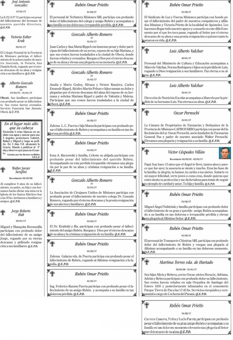 Fúnebres del jueves 2 de febrero de 2017