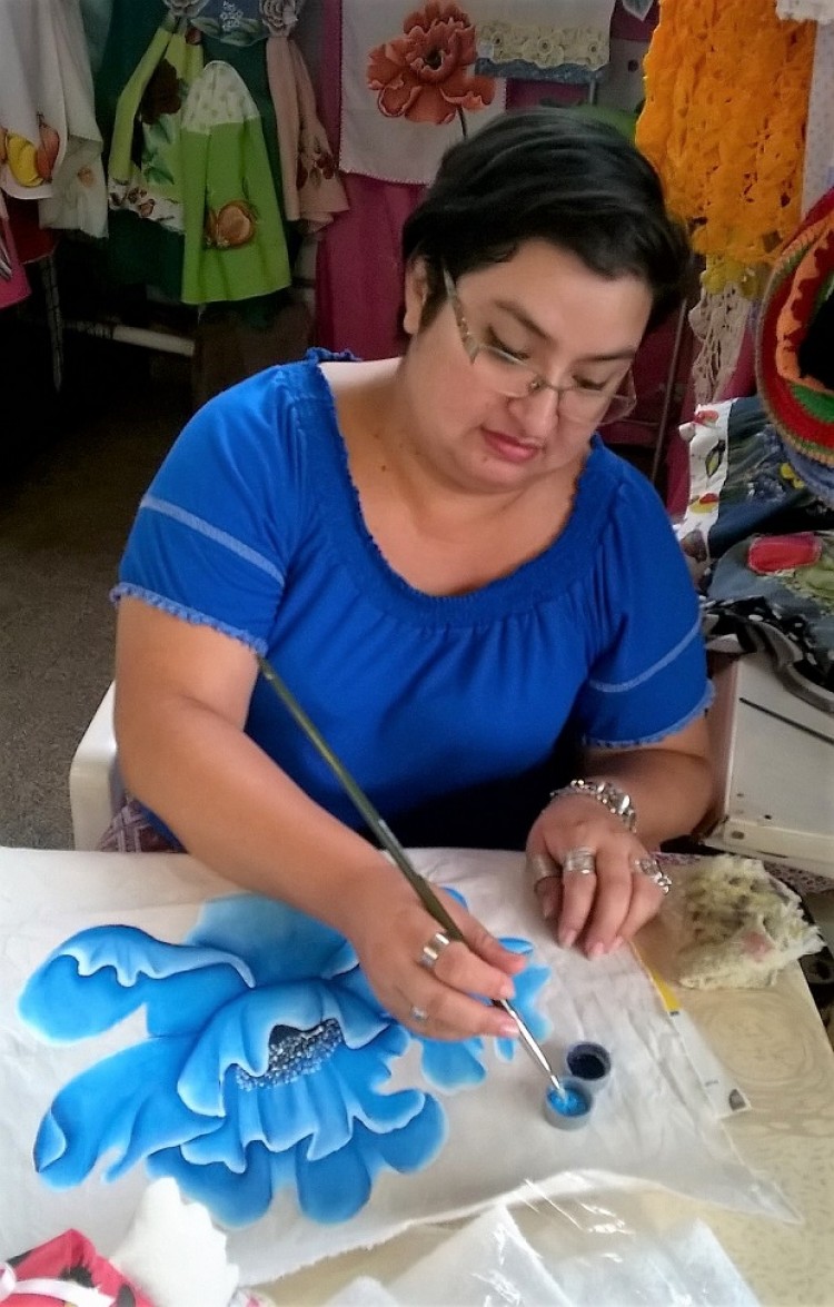 Desde chica Fabiana Verón comenzó a incursionar en el rubro y de manera permanente se capacita para mejorar sus técnicas y lograr un producto cada vez de mayor calidad. “Hay mucha gente que te valora el trabajo, que entiende que es un trabajo manual que demanda mucho tiempo pero hay otros que no le dan tanta importancia y lo ven como caro, pero no se dan cuenta que un mantel de un metro y medio te lleva más de un mes pintarlo”, explicó.En su puesto en el sector Varios del Mercado Concentrador de Posadas, Fabiana ofrece una interesante variedad de productos donde se ve la acción de sus manos. Ofrece agarraderas, manteles, caminos de mesa, fundas, toallas decoradas, bolsas para pan, fundas para garrafas de gas y dispenser y también ropa. Pinta frutas, flores, animales, paisajes o lo que el cliente solicite. Comentó además que pintan motivos eclesiásticos, ya que muchas iglesias solicitan su trabajo. Otra de las actividades que lleva adelante Fabiana son las clases de pintura que brinda en los clubes de abuelos. Relató que los abuelos son muy activos, se integran y les encanta pintar. “Al inicio no se animan porque dicen que ya están grandes pero después ablandan la mano y para fin de año ya tenemos varios productos pintados por ellos mismos”. Del curso participan en su mayoría mujeres, pero también hay varios abuelos que se animan a tomar el pincel y mostrar sus destrezas con la pintura.