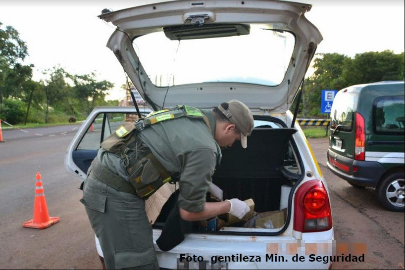 “Desplegamos a los efectivos de las fuerzas federales a lo largo y ancho del país para, sobre todas las cosas, conjurar el delito”, aseguró la ministra de Seguridad, Patricia Bullrich, en tanto que destacó “ la profesionalidad de los efectivos de la Gendarmería que realizaron el procedimiento”.El operativo se realizó ayer, cuando personal de grupo Vial Jardín América, dependiente del escuadrón 11 San Ignacio de GNA, fuerza dirigida por Gerardo Otero, efectuaba controles vehiculares dispuestos por el Ministerio de Seguridad de la Nación.En la ruta nacional Nº 12, a la altura del km 1.375, los gendarmes notaron un vehículo VW modelo Gol, identificado como taxi, que intentaba eludir el control.Los efectivos inmediatamente interceptaron al taxi, que iba ocupado por dos hombres. Al inspeccionar en el interior del vehículo, constataron que en el baúl había 11 panes rectangulares con marihuana, arrojando un peso total de 11,019 kg.El Juzgado Federal de Posadas dispuso la incautación de la droga y la detención de los dos hombres.Fotos: Min. de Seguridad de la Nación