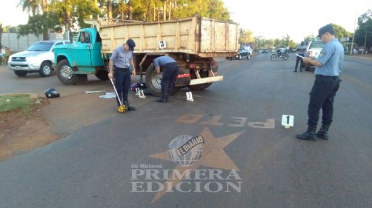 Según informaron desde la comisaría Octava de la Policía provincial, el siniestro vial se registró alrededor de las 18:45 de este miércoles sobre la avenida Tulo Llamosas.Un joven identificado como Gabriel C. (27) y domiciliado en Posadas circulaba en sentido Norte-Sur al mando de una motocicleta Yamaha YBR de 125 cc y que a la altura de González Automotores giró hacia el Este, donde fue cerrado por un camión marca Dodge 600 al mando de otro joven de 24 años domiciliado en Miguel Lanús, que circulaba en el mismo sentido y pretendía realizar la misma maniobra. Por el hecho, la motocicleta terminó incrustada debajo del camión y afortunadamente el motociclista resultó con lesiones aparentemente leves. Igualmente fue trasladado al hospital por una ambulancia.Fotos: M.Fedorischak