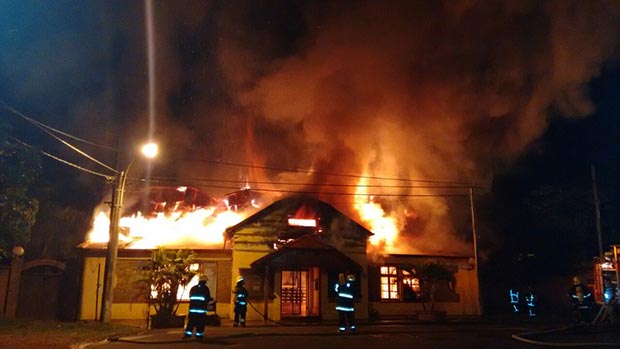 Con las primeras luces de esta jornada continuaban los trabajos de dotaciones de Bomberos de la Policía, con  apoyo de los voluntarios, en el incendio del local “Club 90”.El boliche es propiedad de Sergio R. (34), de acuerdo a lo corroborado por efectivos de la Seccional 1ª.El predio, de 30×30 resultó dañado casi en su totalidad. Peritos tratan de establecer si el origen del fuego se produjo en el área de la cocina donde además había una heladera y freezer.El edificio en el que se encontraba el bliche es histórico de la ciudad de Puerto Rico. Inaugurado en 1934 como sede del Club Social y Deportivo Victoria, cuya construcción estuvo a cargo del por entonces presidente del club, Sr. Juan Seidel.Con los años cambió de dueños y fue tradicional y principalmente un local bailable. Actualmente funcionaba el "Club 90".Trabajaron en el siniestro Bomberos Voluntarios de Puerto Rico, Capioví y Garuhapé, junto a los de la Policía.