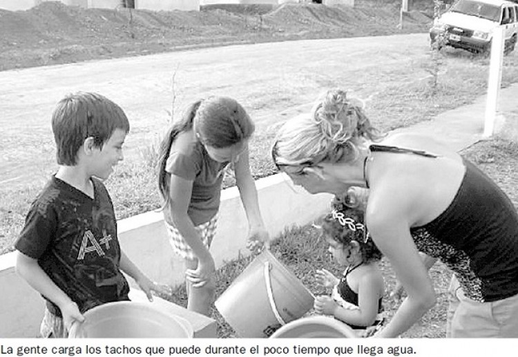 (Nota publicada el 9 de febrero de 2012)La escasez de agua en San Antonio ya llegó al límite de obligar a algunos vecinos a cruzar la frontera para bañarse. Este es el caso de la familia de Mirta, que reside atrás de la Escuela de Frontera y aunque está al lado del tanque de la cooperativa contó que acude a la casa de familiares en Santo Antonio (Brasil) para poder higienizarse, igual que muchas otras familias que reciben a cuenta gotas el servicio.Desde el comienzo del verano se escuchan en diferentes barrios de la comuna los reclamos por la falta de suministro de agua y la escasez la sufren, tanto los barrios nuevos, como el inaugurado el 9 de diciembre por el Iprodha; los más céntricos, Villa Alta y Escuela de Frontera; y también los más alejados, como el Industrial.El servicio de agua en San Antonio está a cargo de la Cooperativa de Agua de San Antonio (Coopasa), que a su vez responsabiliza a la empresa Emsa por el deficiente servicio eléctrico que provoca fallas en el suministro del agua.El presidente de la entidad, Mingo Costa, advirtió en octubre del año pasado: “Sabemos que se están por entregar casas construidas por el Iprodha, es un barrio nuevo donde no hay agua, no llega. No sabemos cómo las familias van a ocupar las casas si no van a tener agua. Nosotros ya planteamos ese problema a las autoridades pero hasta el momento no obtuvimos ninguna respuesta”.Y lamentablemente así fue: el barrio nuevo de Iprodha es uno de los que desde hace dos meses sufre la escasez del vital líquido y sus habitantes, al igual que los de otros barrios, buscan diferentes formas de solucionar el problema, pero no encuentran solución.Algunas de las explicaciones que reciben los usuarios hartos del servicio es que por falta de luz la cooperativa no puede proveer. “Cada tres días nos llega un poquito, una hora de agua, que juntamos con tachos, pues sólo viene a las canillas de abajo y por un rato. Nosotros nos bañamos en casa de mis parientes, que viven en Santo Antonio, es una vergüenza, la solución la estamos encontrando en Brasil, yo vivo al lado del tanque de agua de la cooperativa y desde el 22 de diciembre que venimos así”.“Desde la Cooperativa nos dicen que es por falta de luz, pero cuando hay luz tampoco hay agua. Queremos agua, necesitamos agua”, rogó la mujer.Los vecinos dicen que muchos recurrieron a la cooperativa y que allí les dicen que es un problema de suministro eléctrico, luego fueron a la Municipalidad, donde argumentaron que el motivo es la falta de presión y que además hay escasez. La gente está desesperada y pide que las autoridades se hagan cargo de garantizar el vital servicio.Tres litros en ocho díasEstela es del barrio Villa Alta y comentó que la situación es crítica. Hace ocho días que está sin agua y durante ese tiempo apenas tres litros pudo juntar. “Reclamamos y no hay respuesta, todos los veranos pasa lo mismo, este fue el peor”, señaló la mujer, quien dijo que es absurdo abonar por un servicio con el que no cuentan.“Esta problemática afecta a la comunidad entera, el intendente tendría que buscar los mecanismos necesarios para resolverla”, manifestó.Algunos vecinos apuntan a la cooperativa, otros al municipio, y la gente sobrevive como puede y sin el vital líquido; hasta tiene que cruzar la frontera para bañarse. Los habitantes manifestan que el problema es histórico y reclaman una solución.