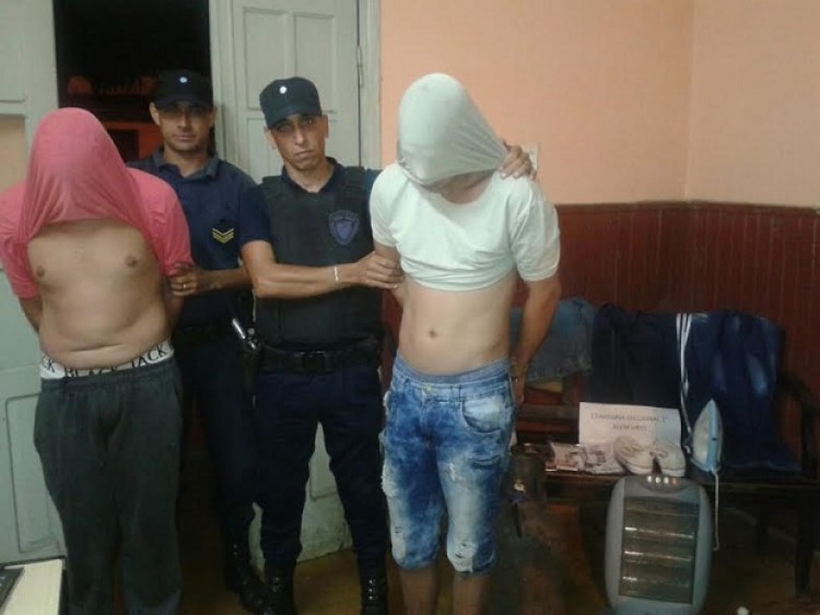 Cerca de las 4:00 hs de este sábado, un comerciante de 45 años identificado como Luis R. avisó a la Policía que personas desconocidas habían ingresado a su vivienda y le hbían sustraído una garrafa de gas, un par de zapatillas, una plancha, una estufa y varias prendas de vestir.Inmediatamente intervino una patrulla de la seccional Primera, cuyos efectivos divisaron a un hombre que pretendía subir los mencionados elementos a un remís.El individuo intentó huir al ver a los policías, pero fue alcanzado a los pocos metros.Además, oculto entre las malezas en inmediaciones de la casa robada, se halló a su presunto compañero de delito, quien también terminó detenido.El primer sujeto fue identificado como Santiago D.M. (22) y su cómplice, como Héctor R. (22).Ambos fueron trasladados a sede policial y quedaron a disposición de la Justicia, en tanto que los elementos fueron restituidos a su propietario.
