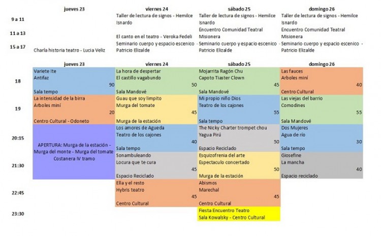 Ya está todo listo para el inicio del 28º Encuentro Provincial de Teatro, bajo el lema "El teatro de fiesta" que contará con 16 espectáculos gratuitos con el propósito de que todos puedan acceder y disfrutar de los universos mágicos de las artes escénicas.El encuentro se realizará desde el jueves 23 hasta el domingo 26 en distintas salas teatrales independientes, espacios culturales y reciclados de Posadas. La apertura de este gran festejo será el jueves 23 a las 20, en el 4º tramo de la Costanera de capitalina. El encuentro contará con el ritmo de los tamboriles, los pasos de baile, y las canciones de los murgueros de nuestra provincia: ya que estarán presentes la Murga del Monte de Oberá, la Murga de la Estación de Posadas, con “Escenas de Misiones”, y la Murga del Tomate de la ciudad de Eldorado. La representación del Instituto Nacional del teatro en Misiones se ha propuesto para esta celebración del teatro, la visibilización de los participantes de los distintos elencos. Por eso los protagonistas de las obras han hecho invitaciones especiales para auspiciar la gran Fiesta del Teatro, y así también sus producciones que compartirán con todo el público durante los cuatro días de encuentro. El objetivo es que nadie se quede sin disfrutar del arte y sus múltiples formas de contemplar la existencia humana puestas en escenas a través de una heterogeneidad de géneros, estilos y formatos: murgas, clowns, dramas, infantiles, musicales, acrobacia, entre otros. Próximamente habrá más novedades, más videos, y más voces de los protagonistas. ¡Qué viva el teatro! Finalmente, el encuentro provincial contó con la colaboración de organismos provinciales, la asociación civil “Afianzar”, UNaM Transmedia, El Centro del Conocimento y la empresa de transporte Crucero del Norte, entre otros.